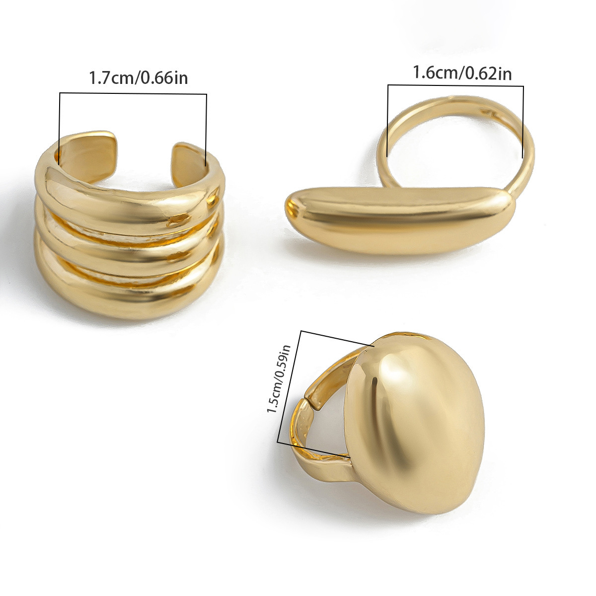 Cink Alloy Ring Set, Cink ötvözet, galvanizált, három darab & divat ékszerek & a nő, aranysárga, Által értékesített Set