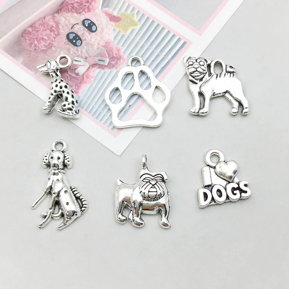 1:Mix 21pcs2:1 ancient silver round hollow dog 14*19mm-1.2g-25623:1 ancient silver puppy 13*17mm-1.2g-33444:1 ancient silver hollow large dog claw 17*20mm-1.2g-71135:1 ancient silver love dog mydog10 * 12mm-1.1g-72776:1 ancient silver long-legged dog 18*20mm-2.1g-98077:1 ancient silver spotted dog 13*24mm-1.3g-98088:1 ancient silver line dog 12*14mm-1.6g-98099:1 ancient silver dog bone 10*14mm-0.6g-981010:1 ancient silver hollow small size dog paw print 11*13mm-0.6g-981111:1 ancient silver dog rice basin 10*15mm-1.2g-981212:1 ancient silver dog 15*16mm-1.6g-981313:1 ancient silver dog 13*20mm-1.3g-981414:1 ancient silver dog 18*10mm-0.8g-1035015:1 ancient silver dog 15*18mm-1.1g-1036816:1 ancient silver poodle 15*15mm-1.3g-1125817:1 ancient silver animal dog 23*17mm-1.5g-1129918:1 ancient silver animal dog 11*21mm-1.1g-1130019:1 ancient silver puppy 11*15mm-0.6g-1131420:1 ancient silver ILOVEDOGS love 12*13mm-1.3g-1556321:1 ancient silver ILOVEMYDOG love 17*14mm-0.9g-1556422:1 ancient silver dog 11*17mm-1.2g-15565