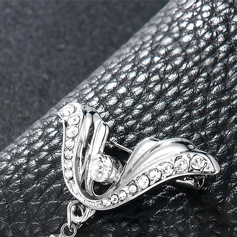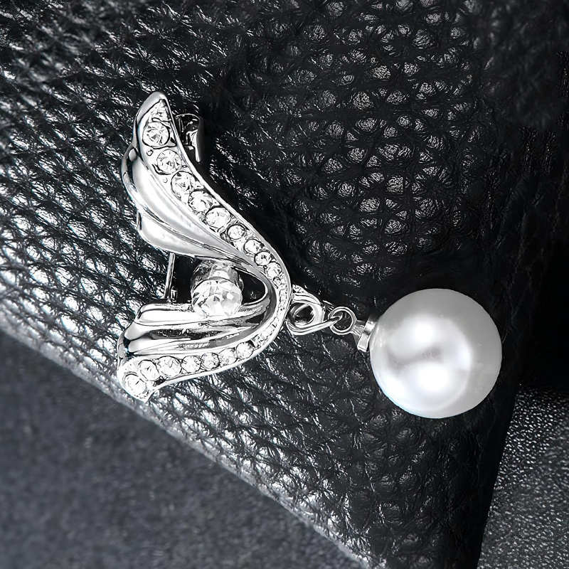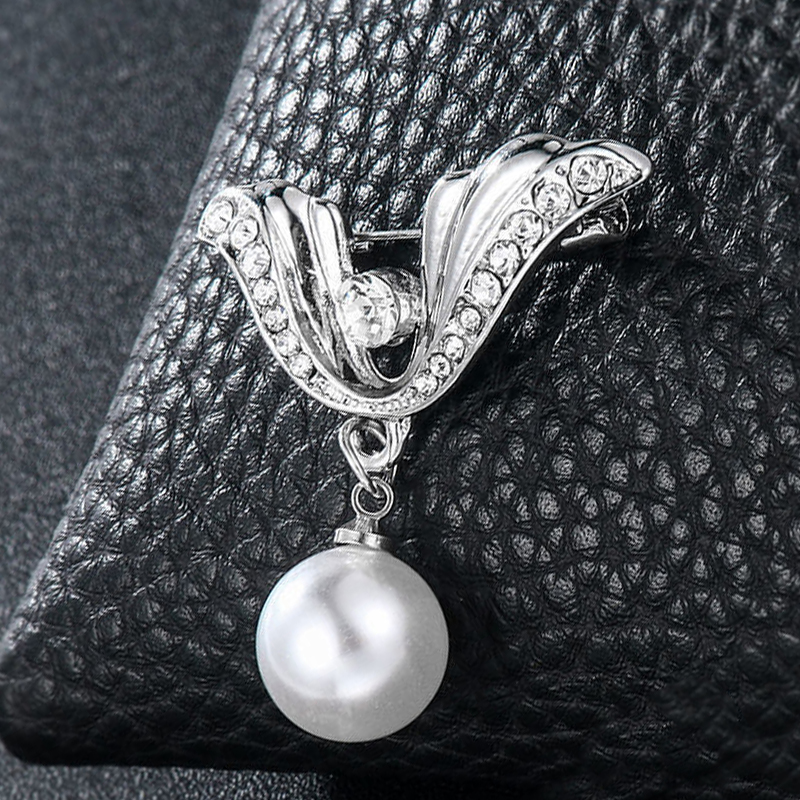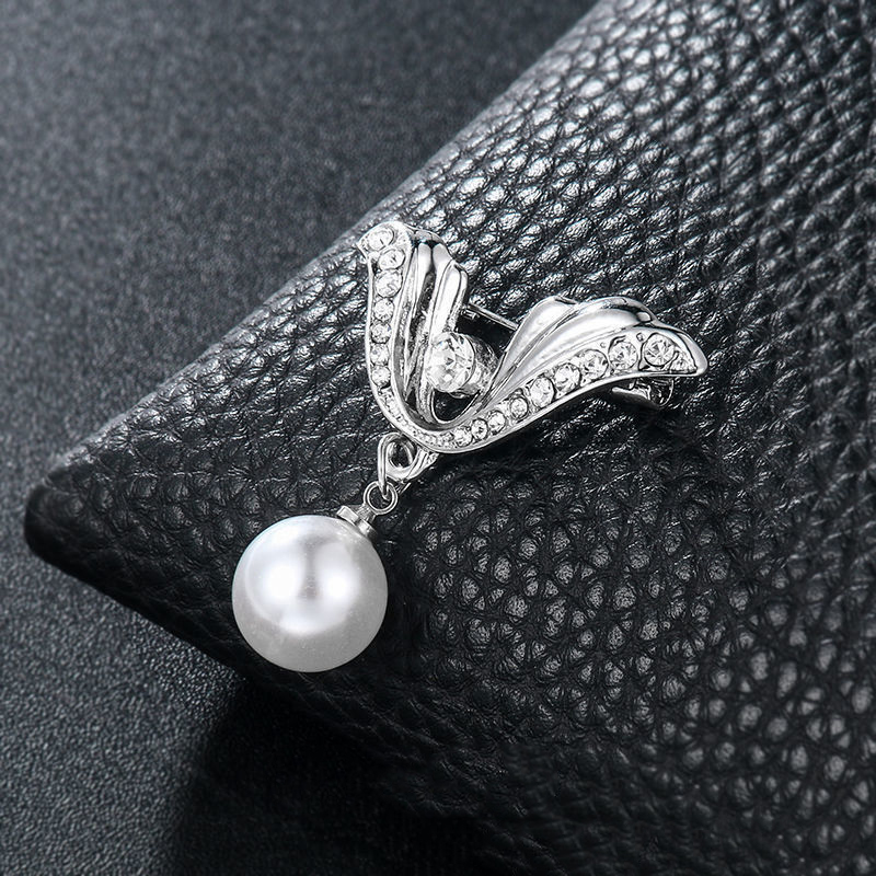Cink ötvözet Bross, -val Műanyag Pearl, ezüst színű bevonattal, a nő & strasszos, 35x32mm, Által értékesített PC