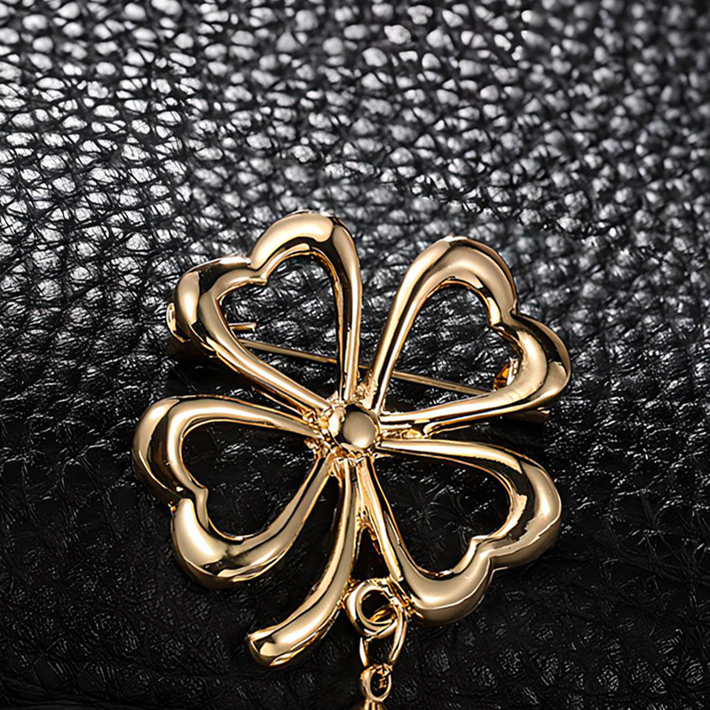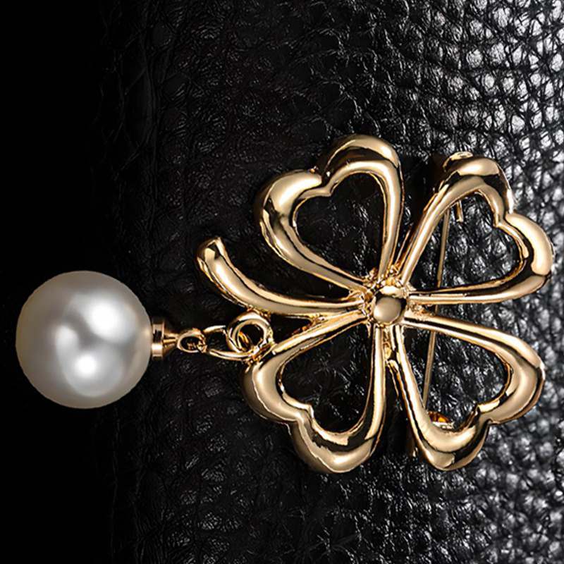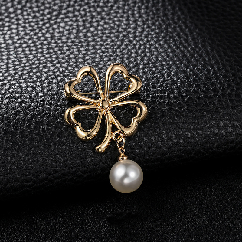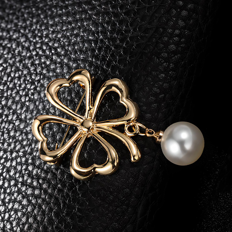 Cink ötvözet Bross, -val Műanyag Pearl, Four Leaf Clover, arany színű aranyozott, a nő & üreges, 29x42mm, Által értékesített PC