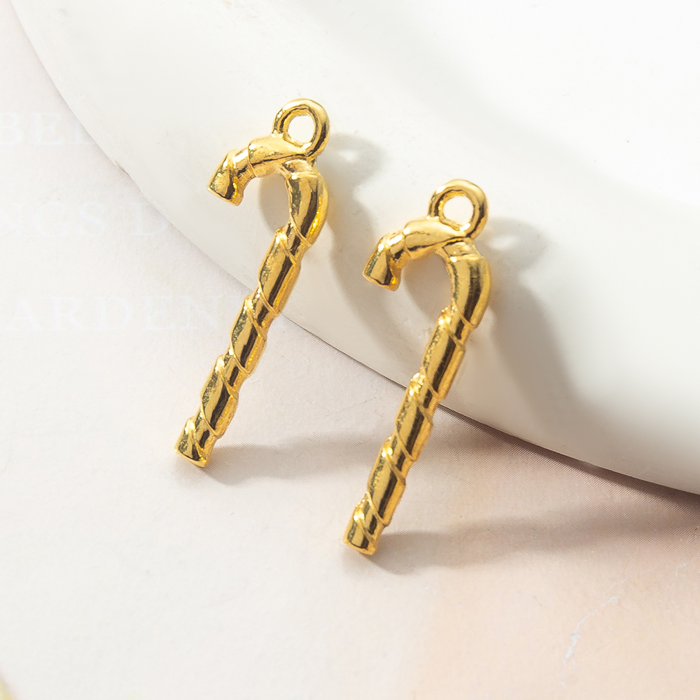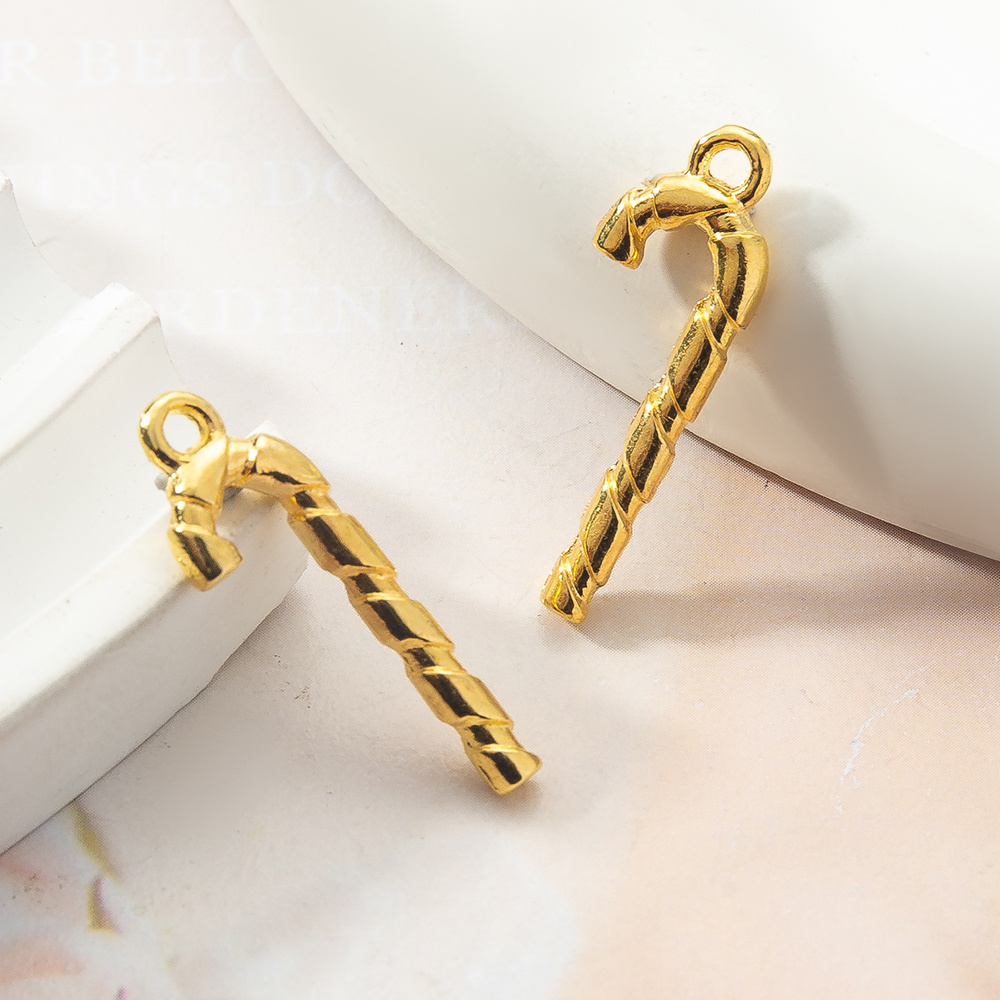 Cink ötvözet Christmas Medálok, Christmas Candy Cane, arany színű aranyozott, DIY, aranysárga, 9.50x3x26.50mm, Által értékesített Bag