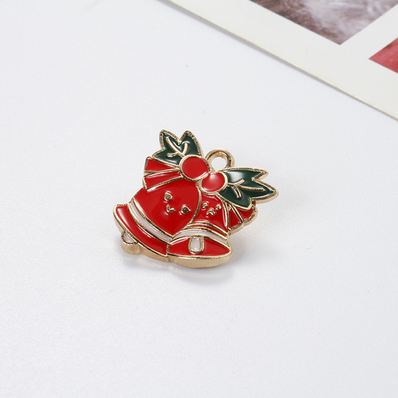 Cink ötvözet Christmas Medálok, Christmas Bell, arany színű aranyozott, DIY & zománc, kevert színek, 20x19.85x2.30mm, Belső átmérő:Kb 1.6mm, Által értékesített PC