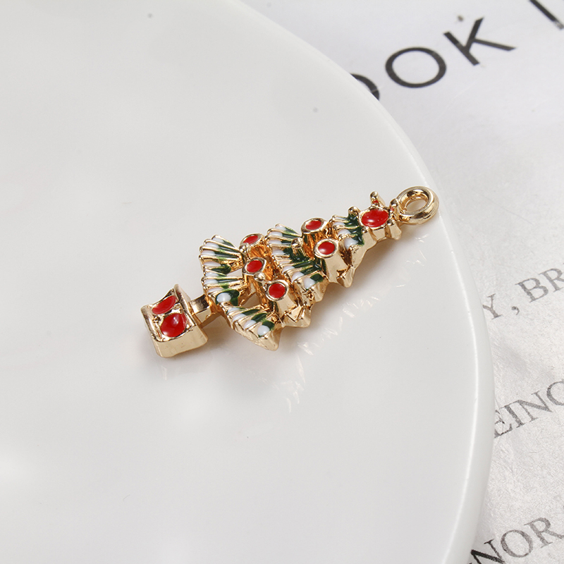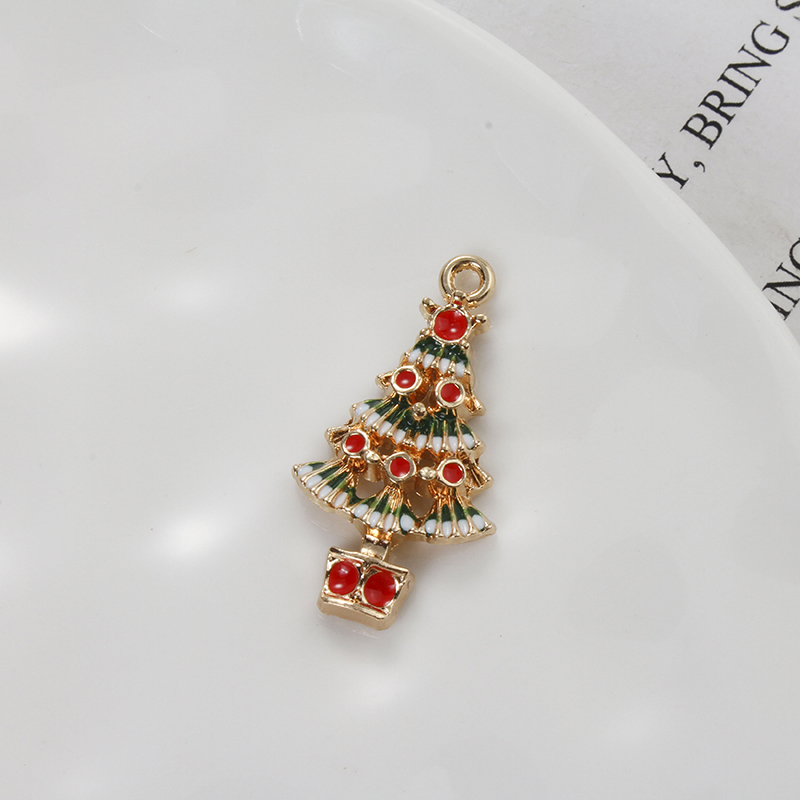 Cink ötvözet Christmas Medálok, Karácsonyfa, arany színű aranyozott, DIY & zománc, kevert színek, 20.60x14.90x4.50mm, Belső átmérő:Kb 1.3mm, Által értékesített PC
