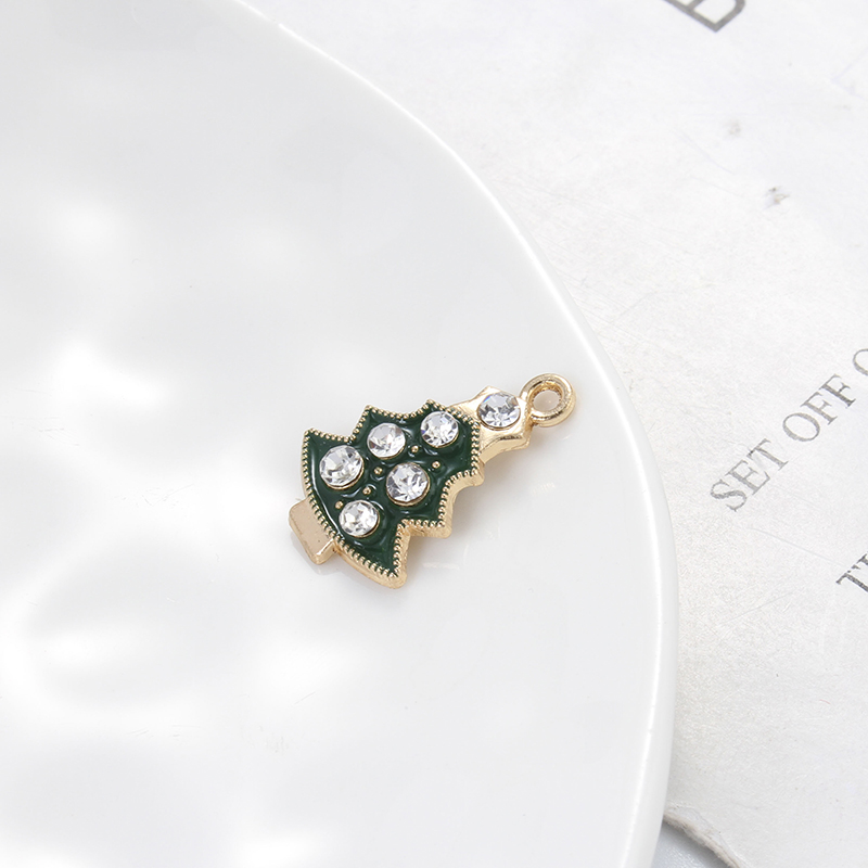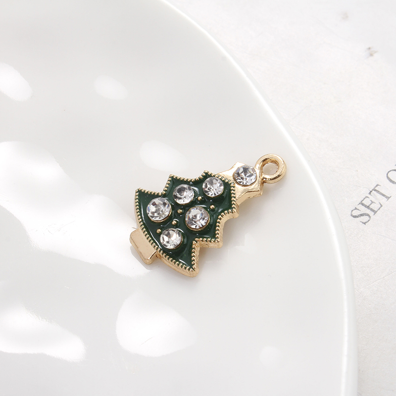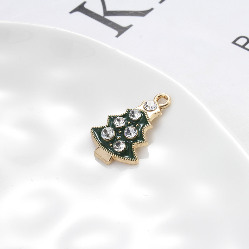 Cink ötvözet Christmas Medálok, Karácsonyfa, arany színű aranyozott, DIY & zománc & strasszos, kevert színek, 22.30x14.60x3.40mm, Belső átmérő:Kb 1.3mm, Által értékesített PC