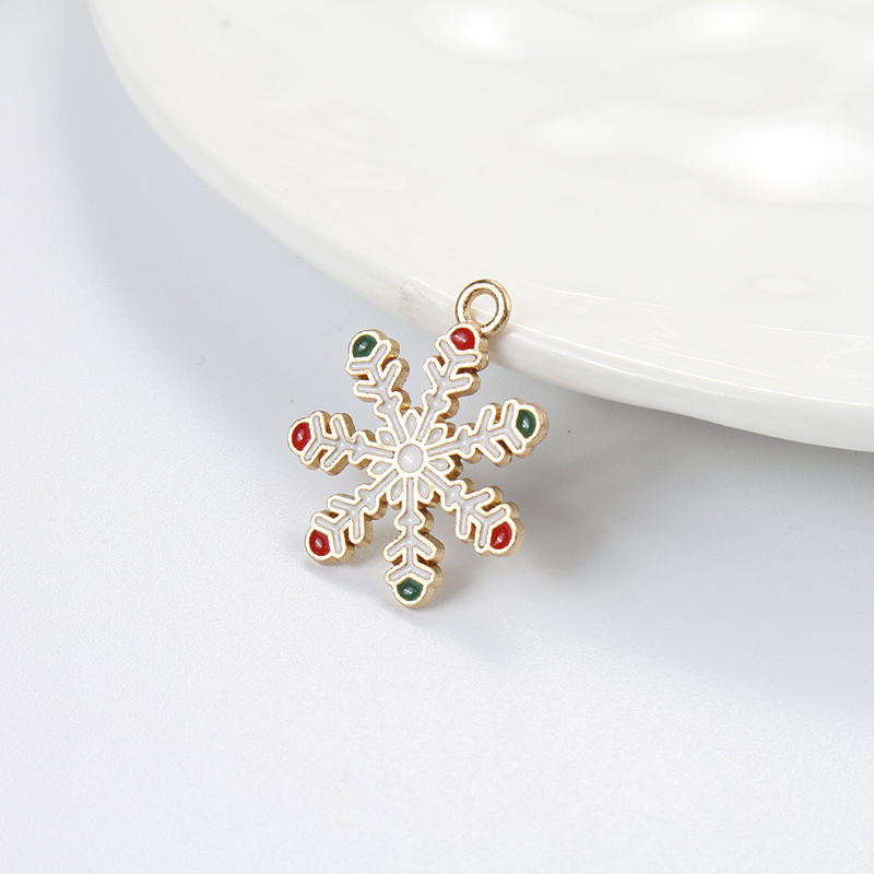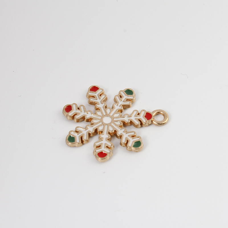 Cink ötvözet Christmas Medálok, Hópehely, arany színű aranyozott, Karácsonyi design & DIY & zománc, kevert színek, 23x14.90x1.20mm, Belső átmérő:Kb 1.3mm, Által értékesített PC