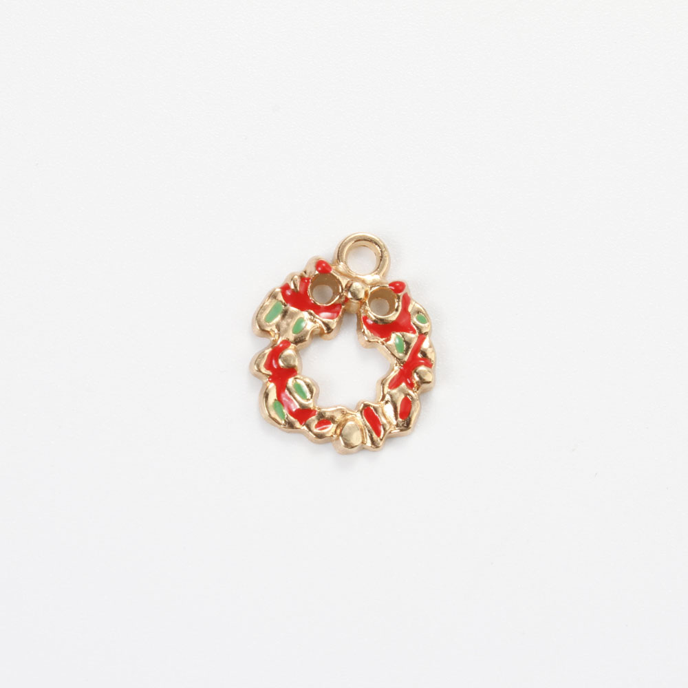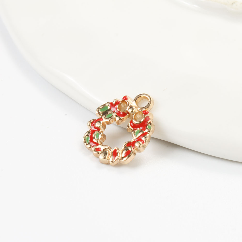 Cink ötvözet Christmas Medálok, Karácsonyi koszorú, arany színű aranyozott, DIY & zománc, kevert színek, 16x13.50x2.80mm, Által értékesített PC