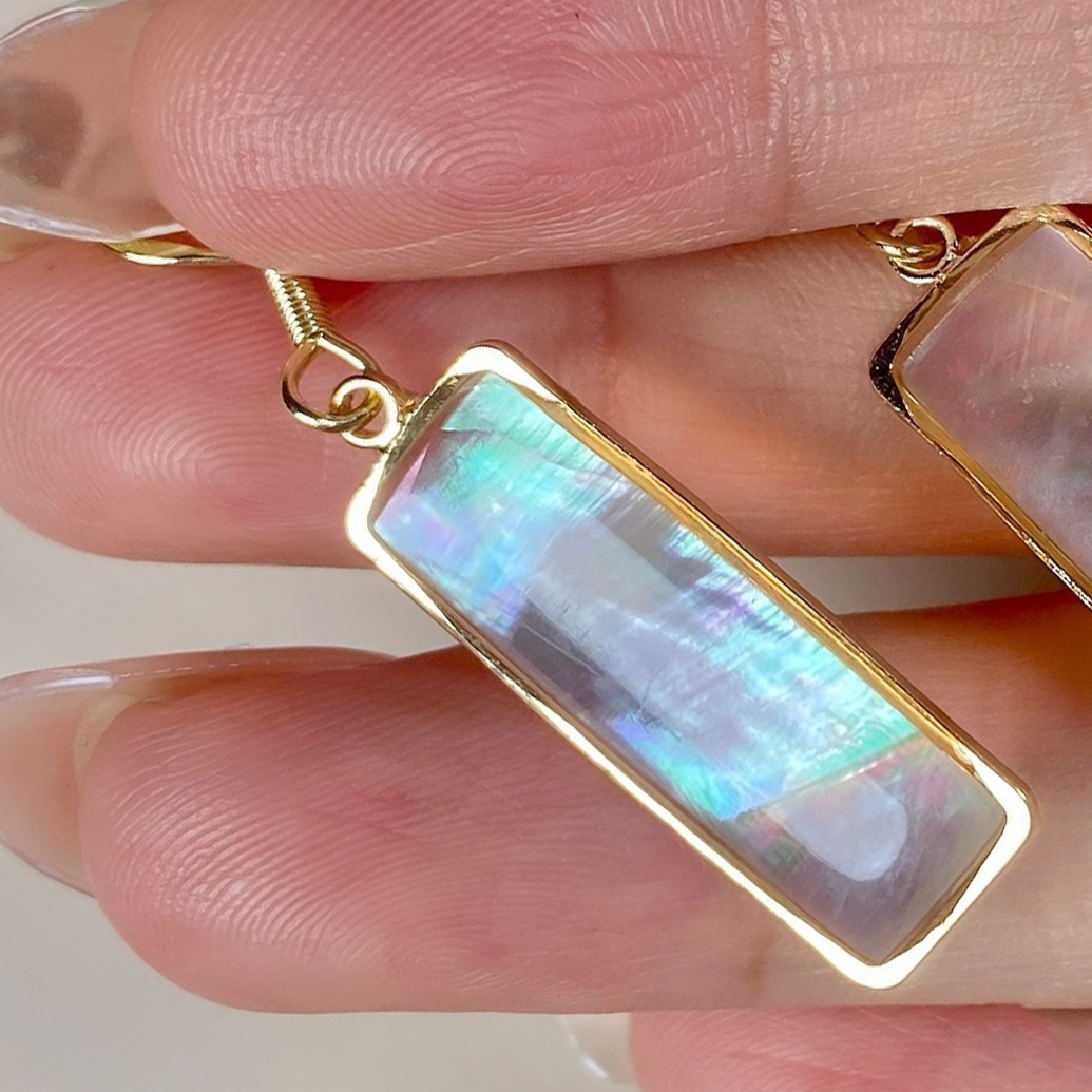 Cink ötvözet Csepp Fülbevaló, -val Abalone Shell, Geometriai minta, arany színű aranyozott, divat ékszerek & a nő, 10x45mm, Által értékesített pár