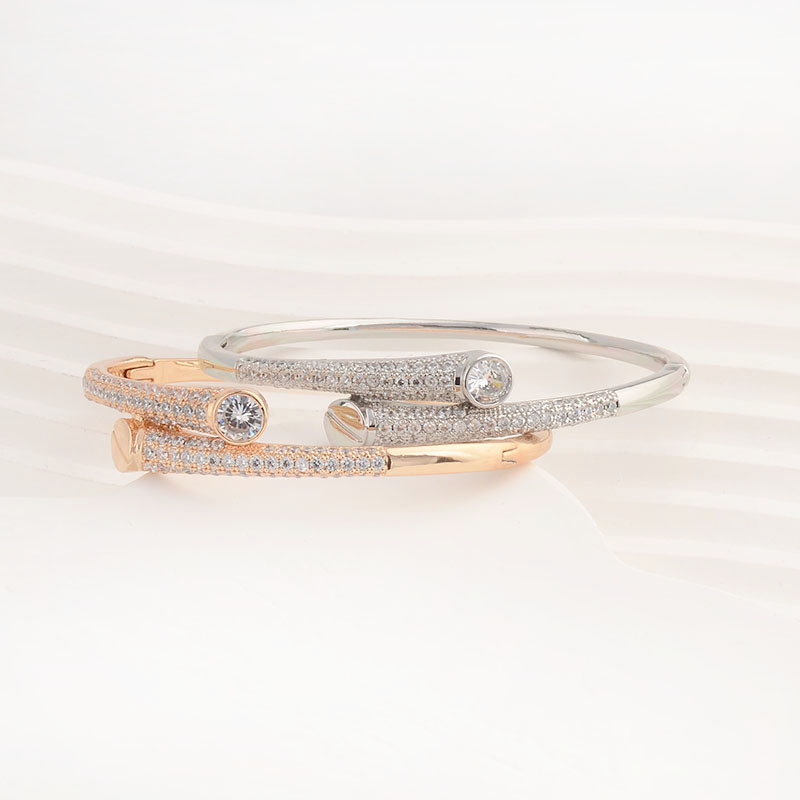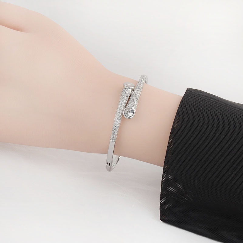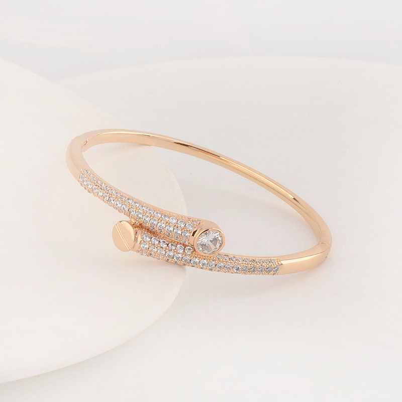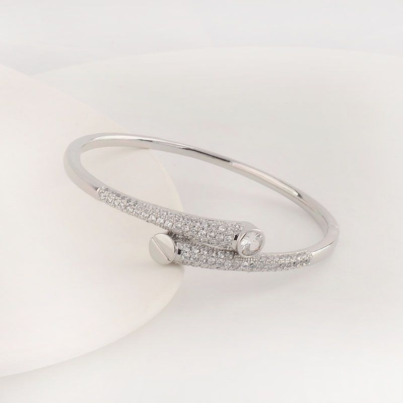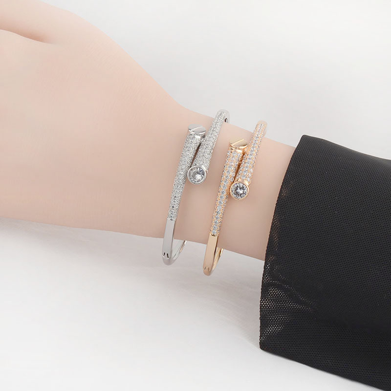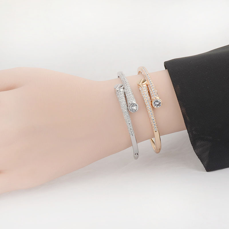 Cink ötvözet Cuff Bangle, galvanizált, mikro egyengetni cirkónia & a nő, több színt a választás, Belső átmérő:Kb 63x53mm, Által értékesített PC