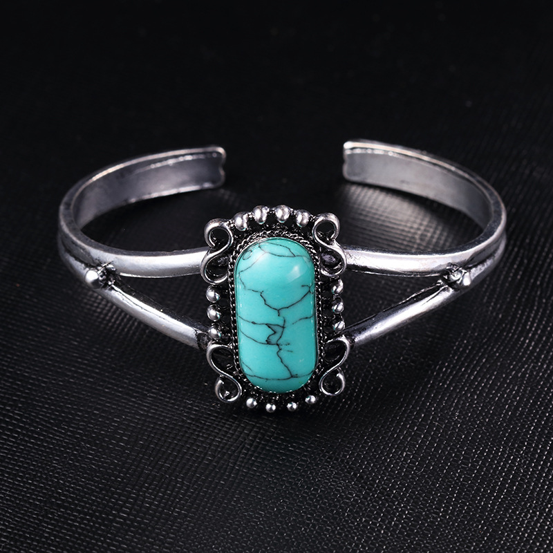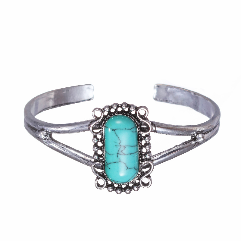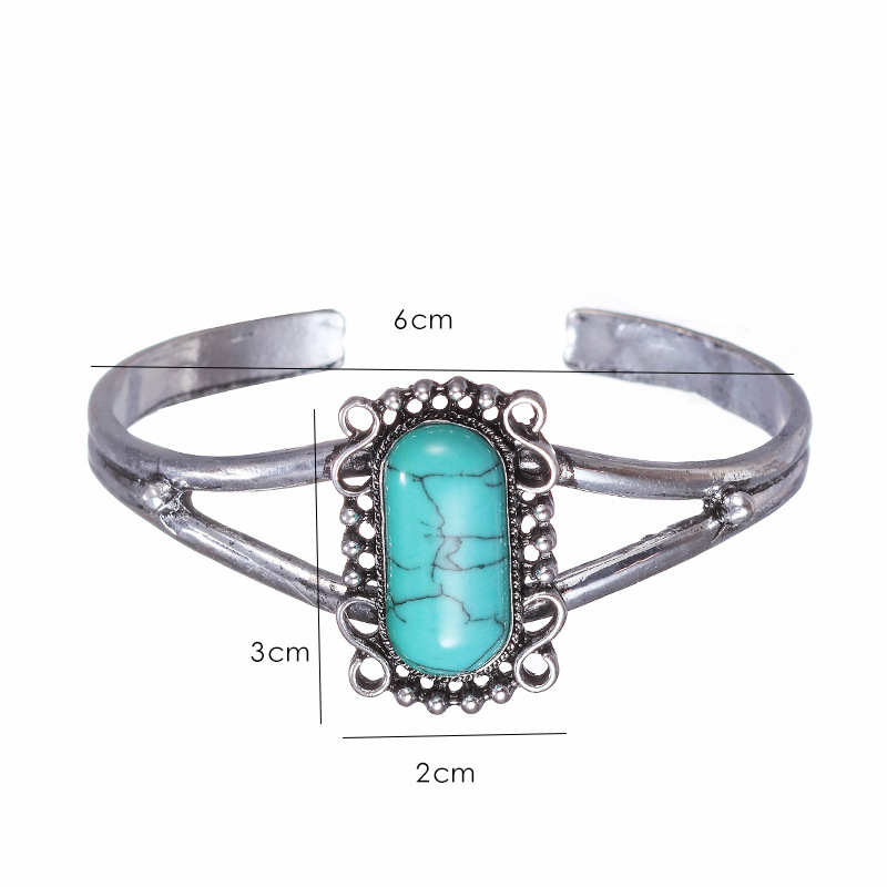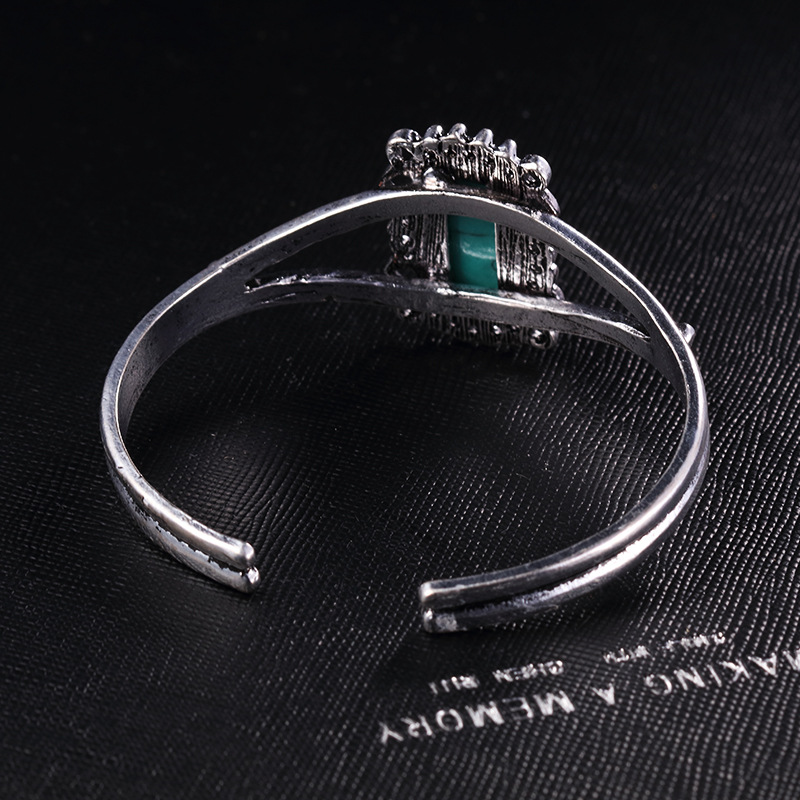 Cink ötvözet Cuff Bangle, -val türkiz, antik ezüst színű bevonattal, állítható & a nő & strasszos, Lyuk:Kb 2.5mm, Belső átmérő:Kb 55x60mm, Által értékesített PC