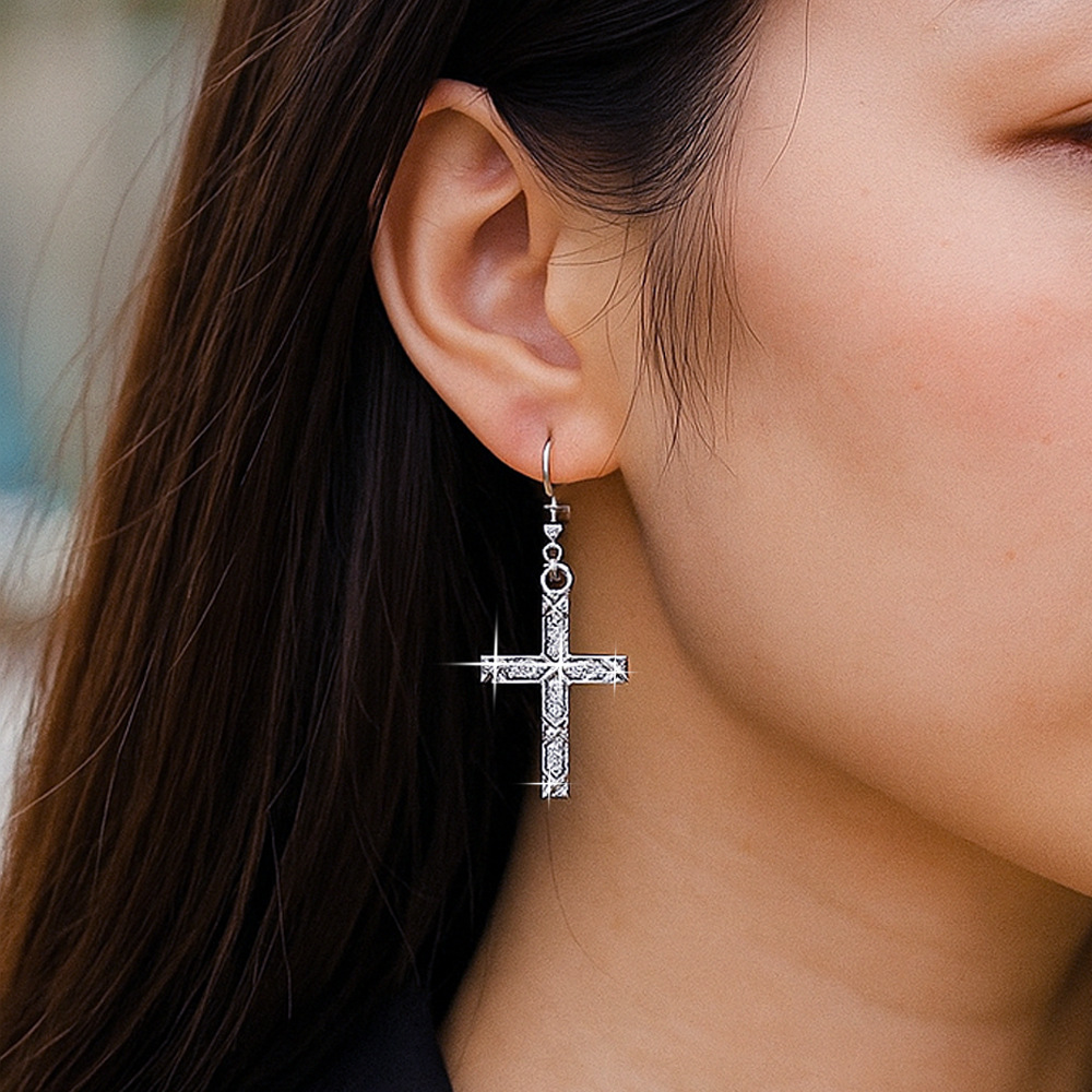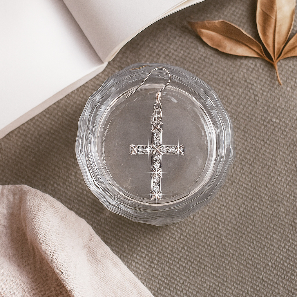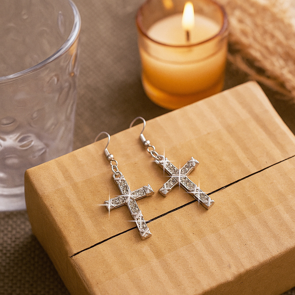 Cink ötvözet Fülbevaló, Kereszt, arany színű aranyozott, divat ékszerek & strasszos, ezüst, Által értékesített pár
