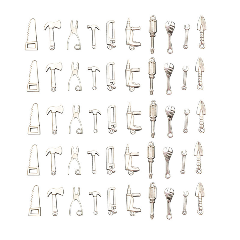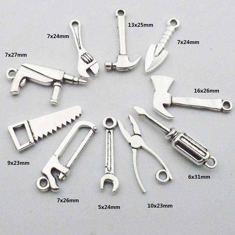 1:Electric drill 7x 27mm 2.2g2:Wrench 7x 24mm 0.9g3:Hammer 13x 25mm 1.2g4:Spade 7x 24mm 0.8g5:Axe 16x 26mm 1.6g6:Screwdriver 6x 31mm 1.8g7:Vise 10x 23mm 0.5g8:Screwdriver 5x 24mm 0.8g9:Saw 7x 26mm 1.2g10:Saw 9x 23mm 1.2g
