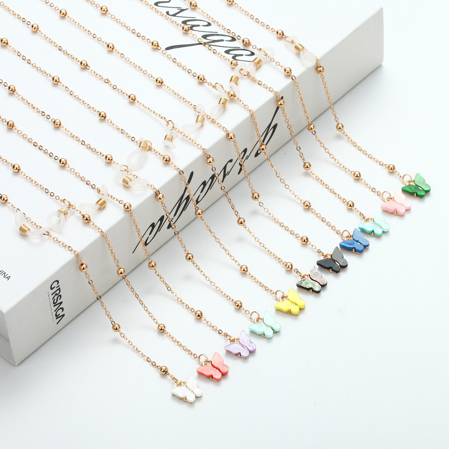 Cink ötvözet Szemüveg lánc, -val Gyanta, arany színű aranyozott, divat ékszerek, több színt a választás, 50x90x10mm, Hossz 38 cm, Által értékesített PC