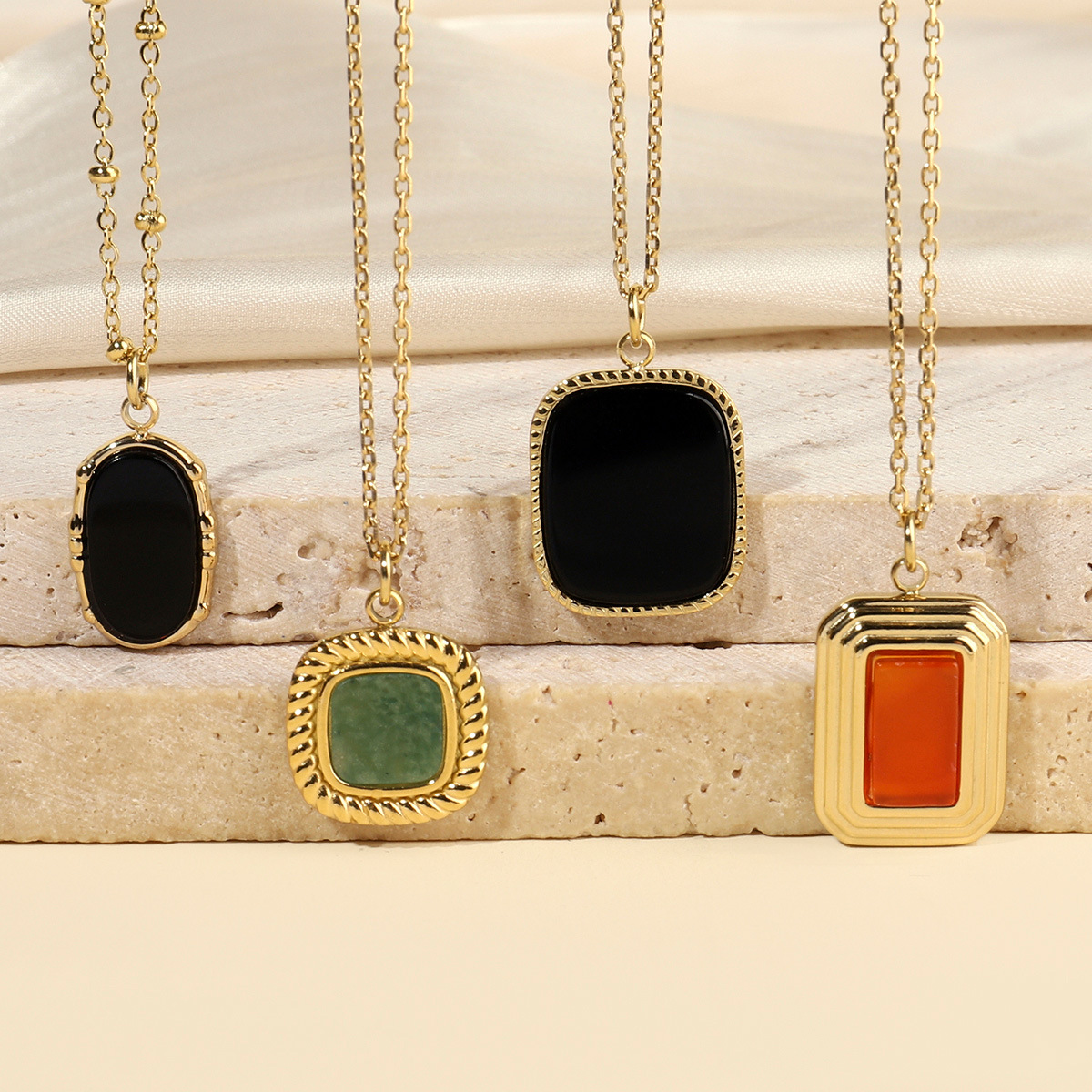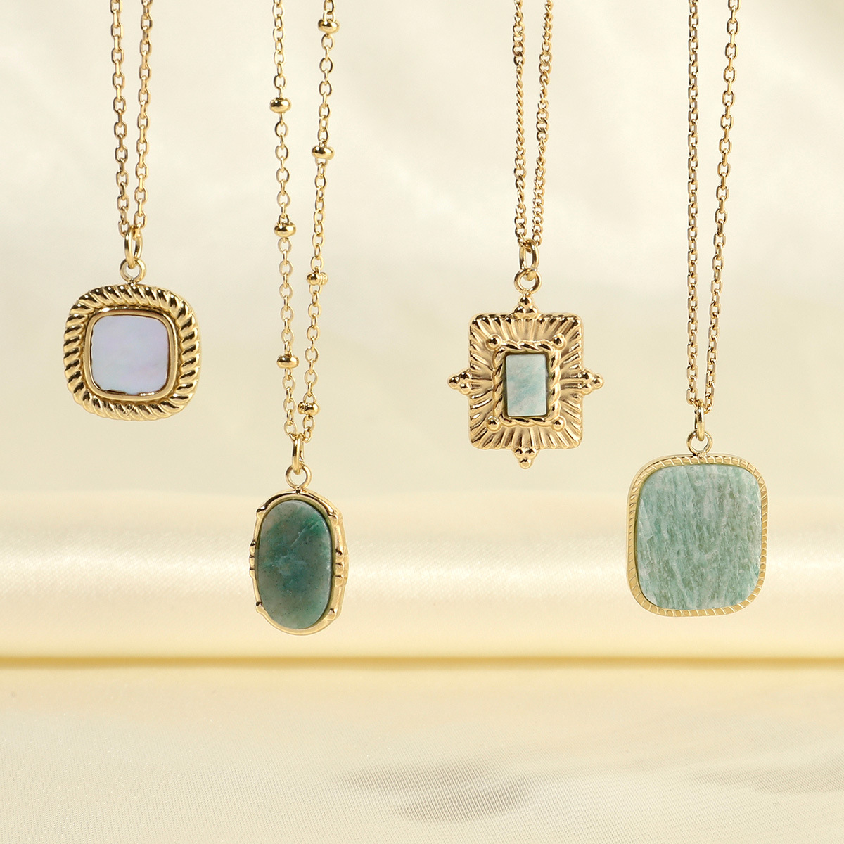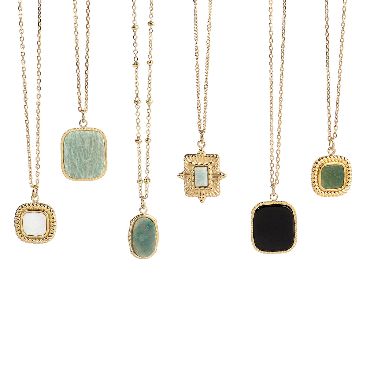 Rozsdamentes acél Ékszerek Nyaklánc, 304 rozsdamentes acél, -val Drágakő, divat ékszerek & különböző méretű a választás & a nő, több színt a választás, 2PC-k/Bag, Által értékesített Bag