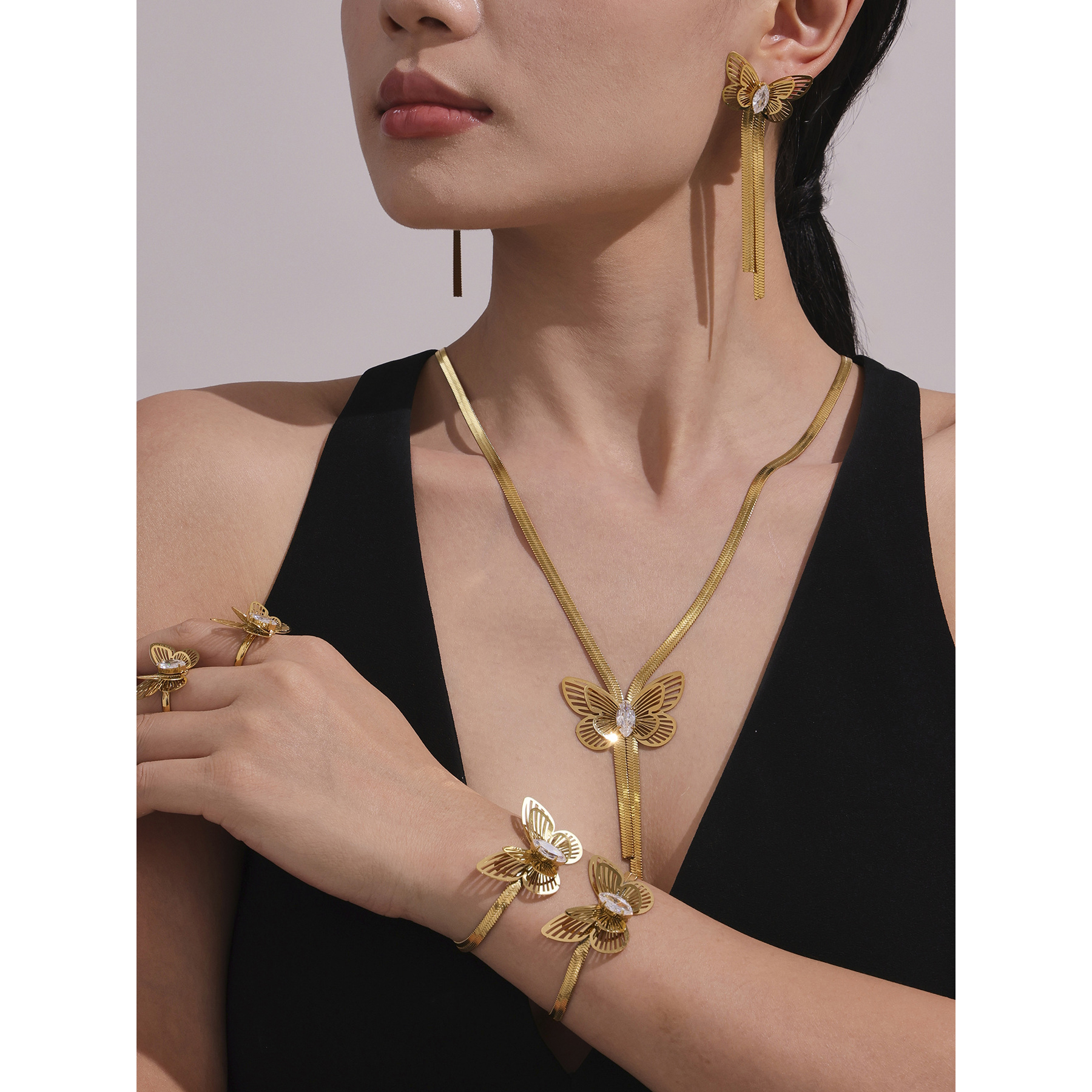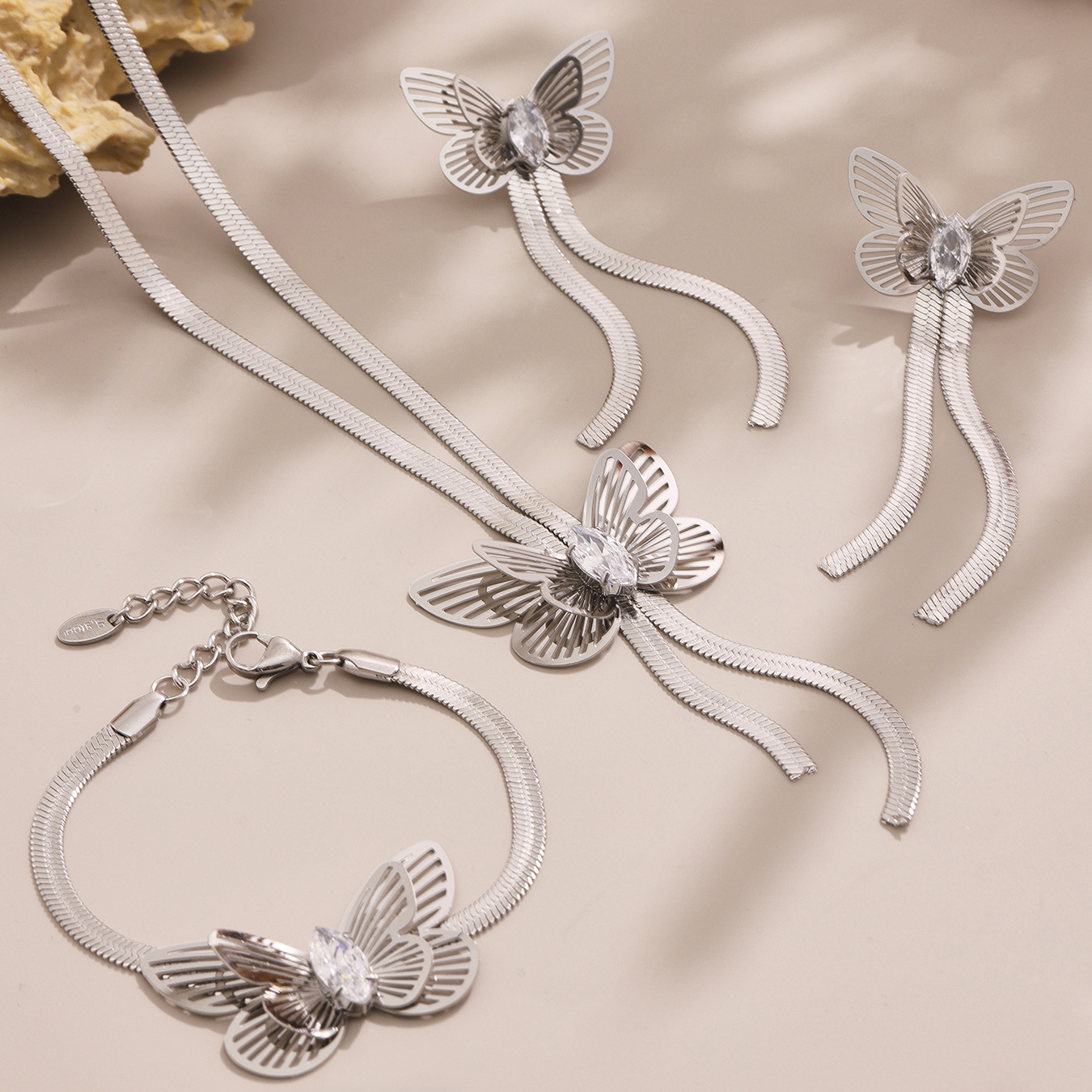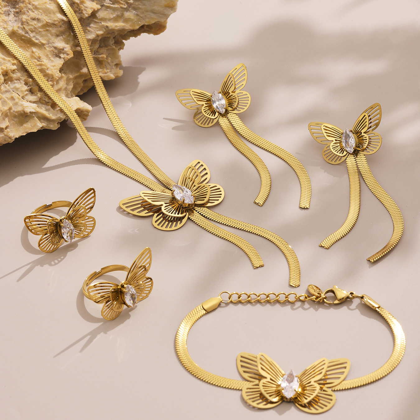 1:Gold necklace2:Steel necklace3:Gold bracelet4:Steel bracelet5:Gold ring6:Steel color ring7:Gold earrings8:Steel earrings