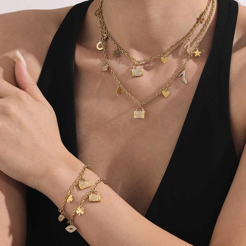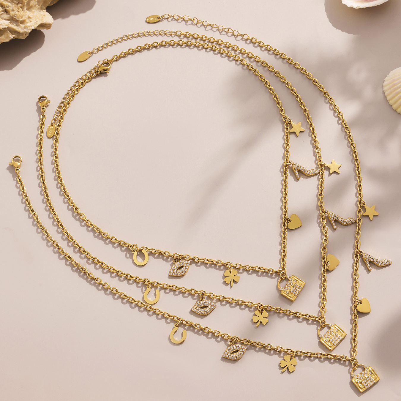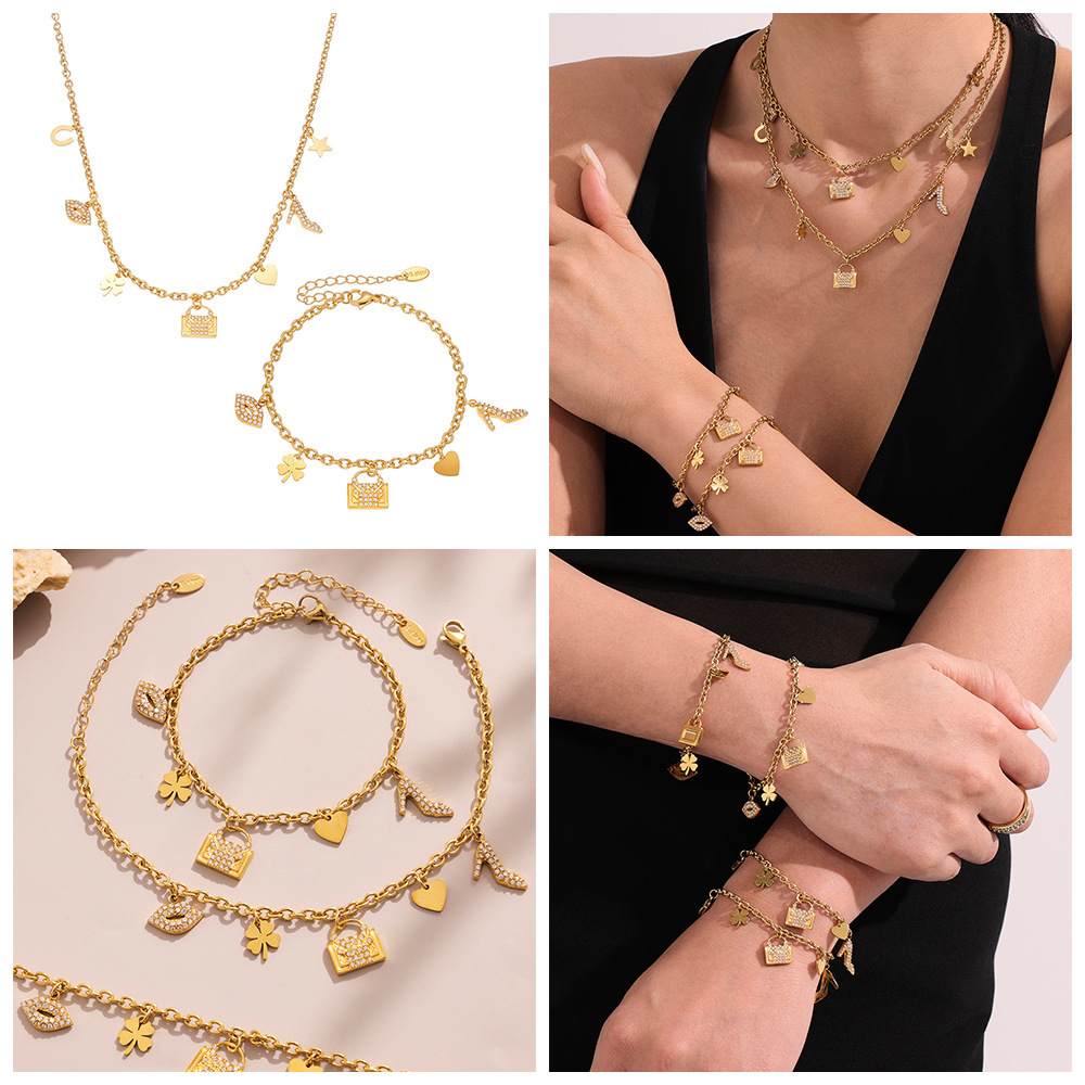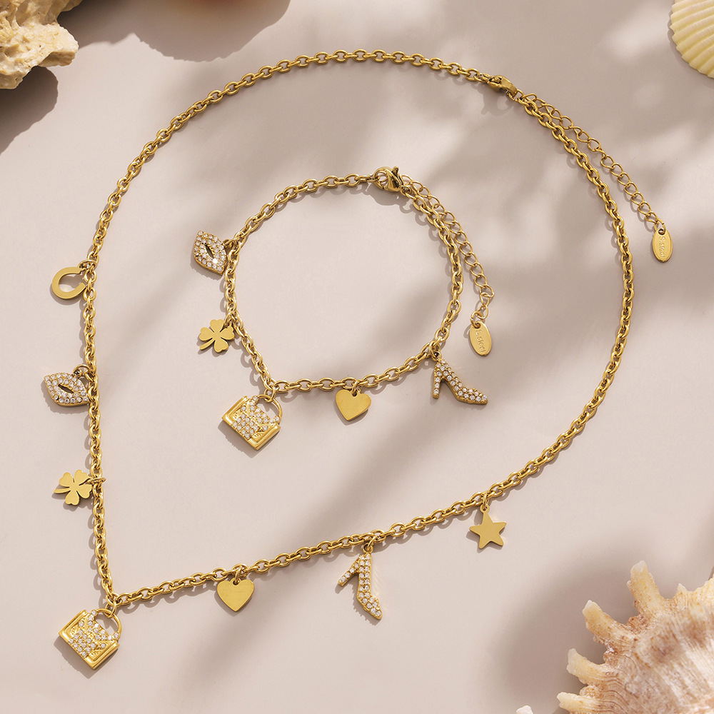 Cubic Zirconia rozsdamentes acél ékszer készletek, 304 rozsdamentes acél, galvanizált, divat ékszerek & mikro egyengetni cirkónia & a nő, aranysárga, Által értékesített PC