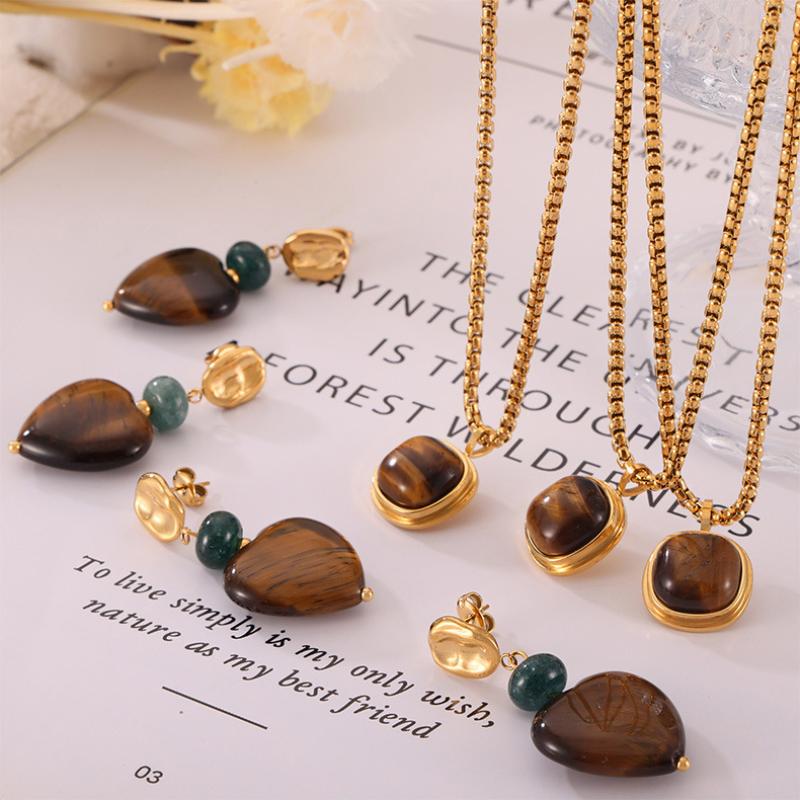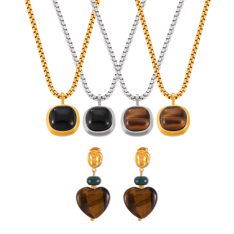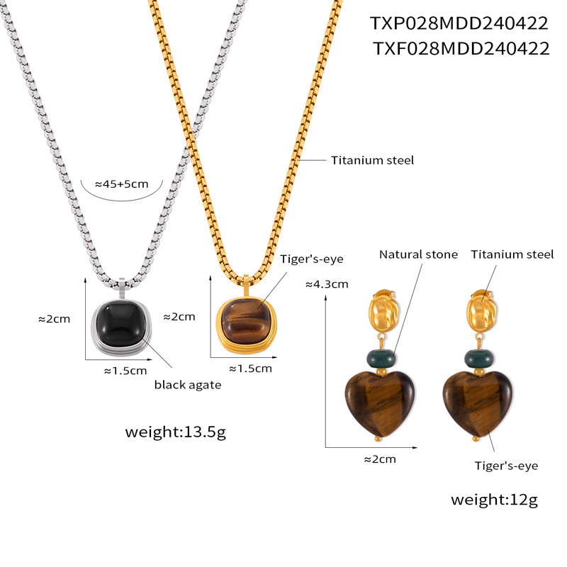 1:TXF028-Gold earrings2:TXP028-steel color black agate necklace3:TXP028-Steel Tiger Eye Necklace4:TXP028-Gold Black Onyx Necklace5:TXP028-Golden Tiger Eye Necklace