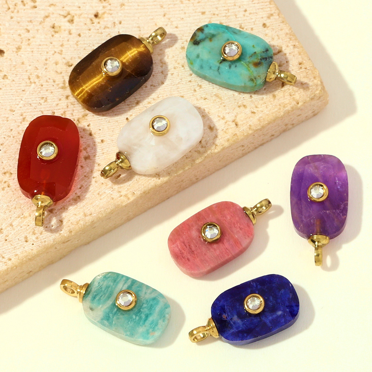 Gemstone Medálok Ékszer, 304 rozsdamentes acél, -val Drágakő, Téglalap, arany színű aranyozott, DIY & strasszos, több színt a választás, 8x16mm, 3PC-k/Bag, Által értékesített Bag