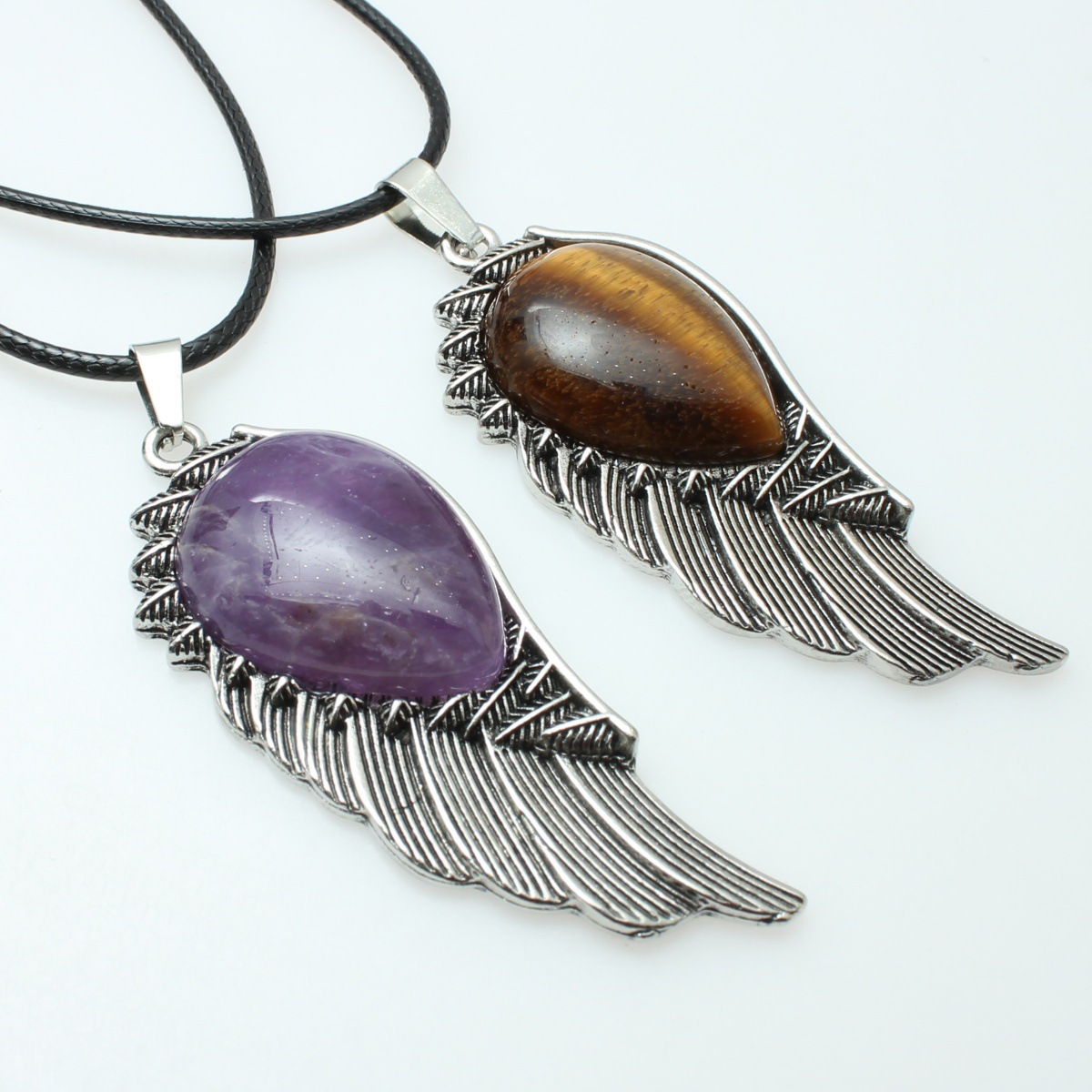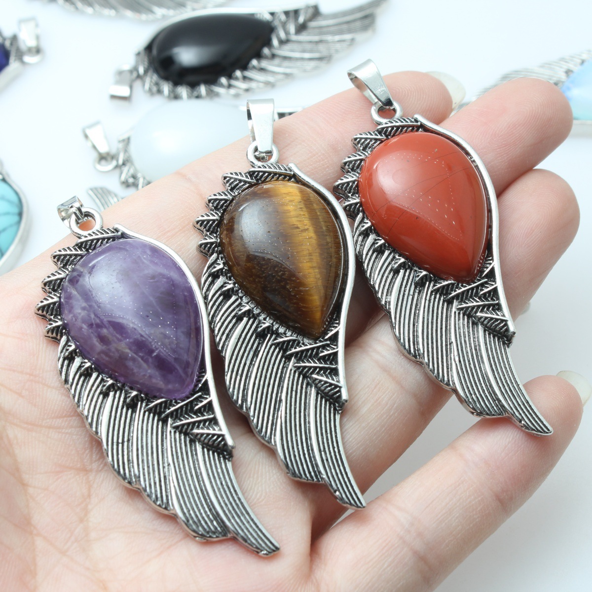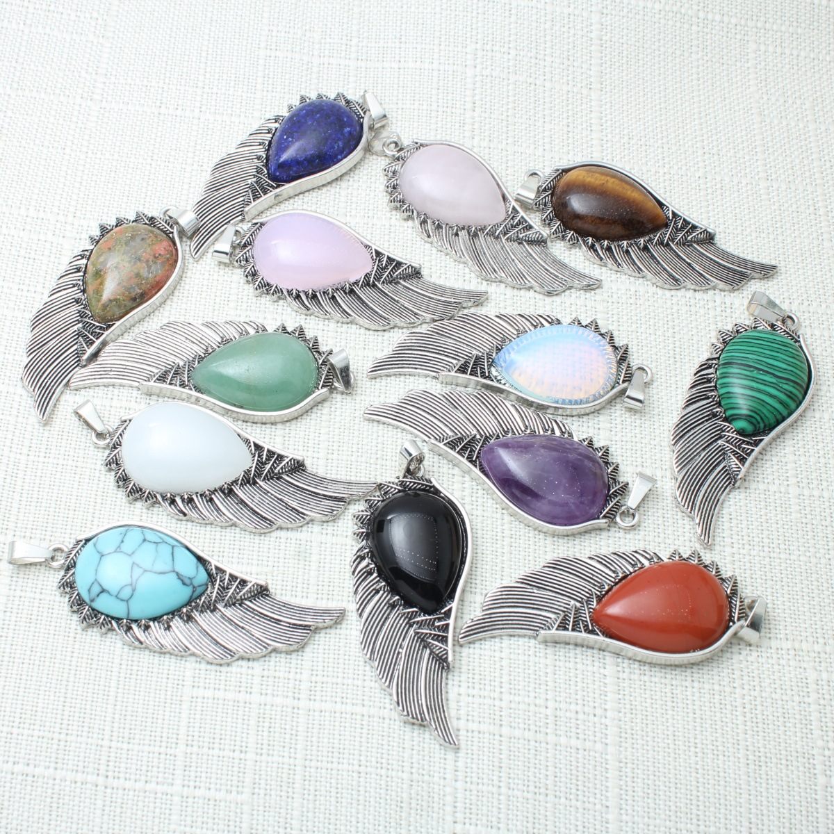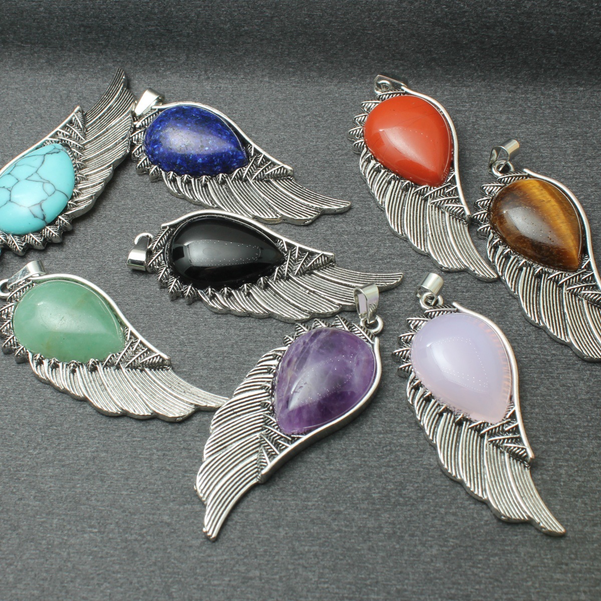 Gemstone Medálok Ékszer, Drágakő, -val Cink ötvözet, Angel Wing, Vintage & DIY & különböző anyagok a választás, 23x55x7mm, Által értékesített PC
