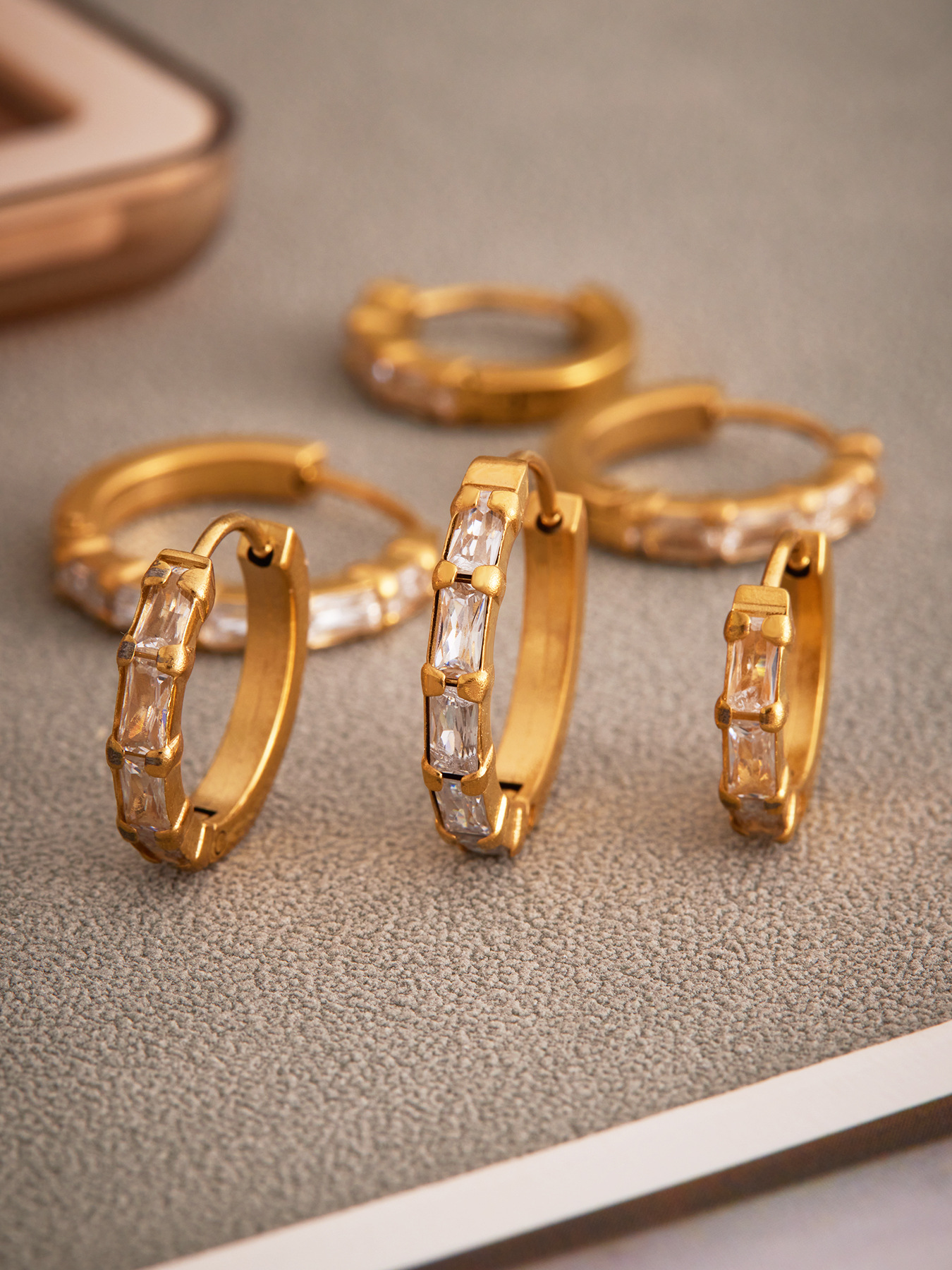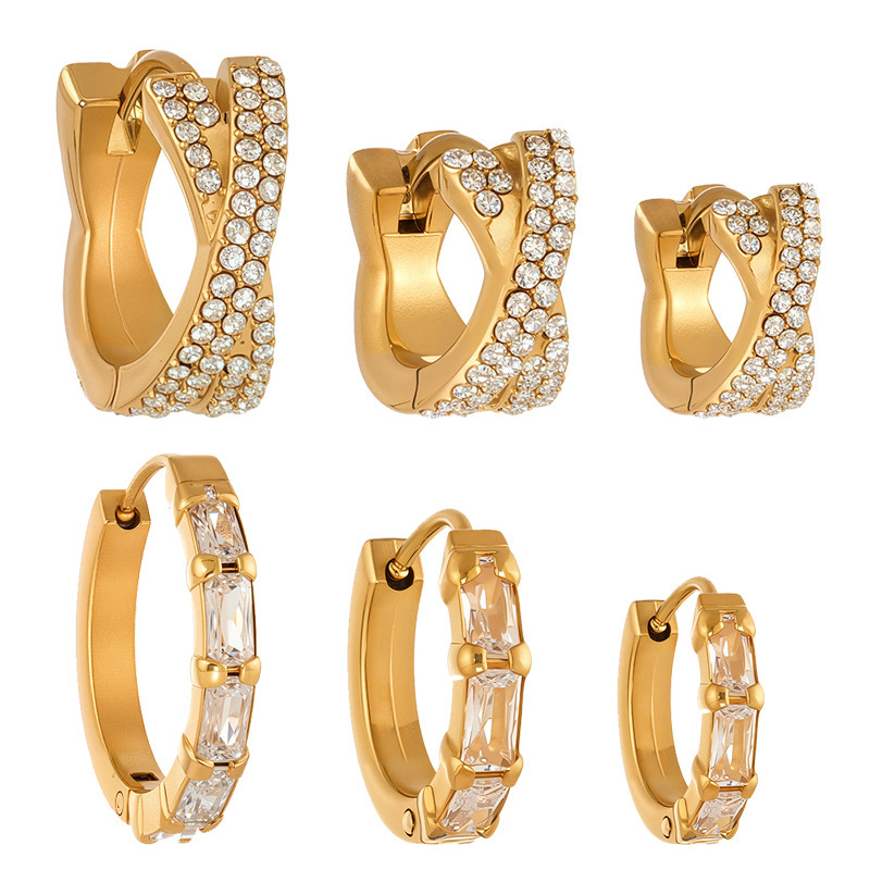 Huggie Hoop Fülbevaló, 304 rozsdamentes acél, arany színű aranyozott, divat ékszerek & mikro egyengetni cirkónia, több színt a választás, Által értékesített pár