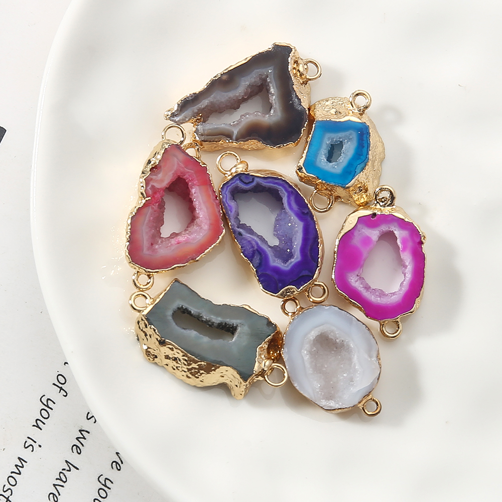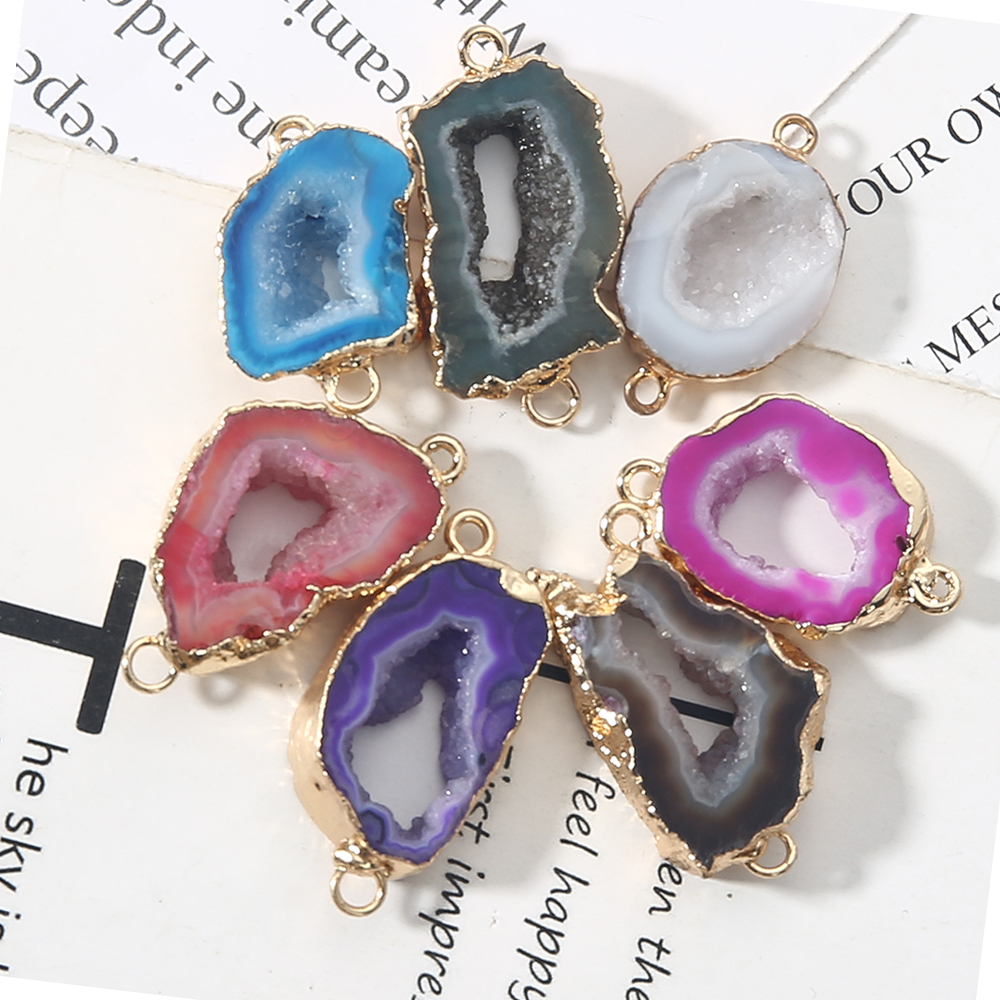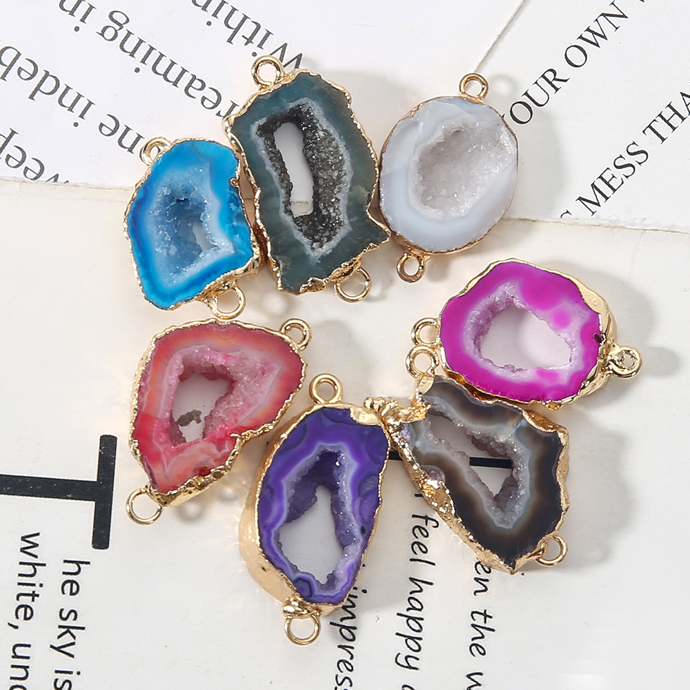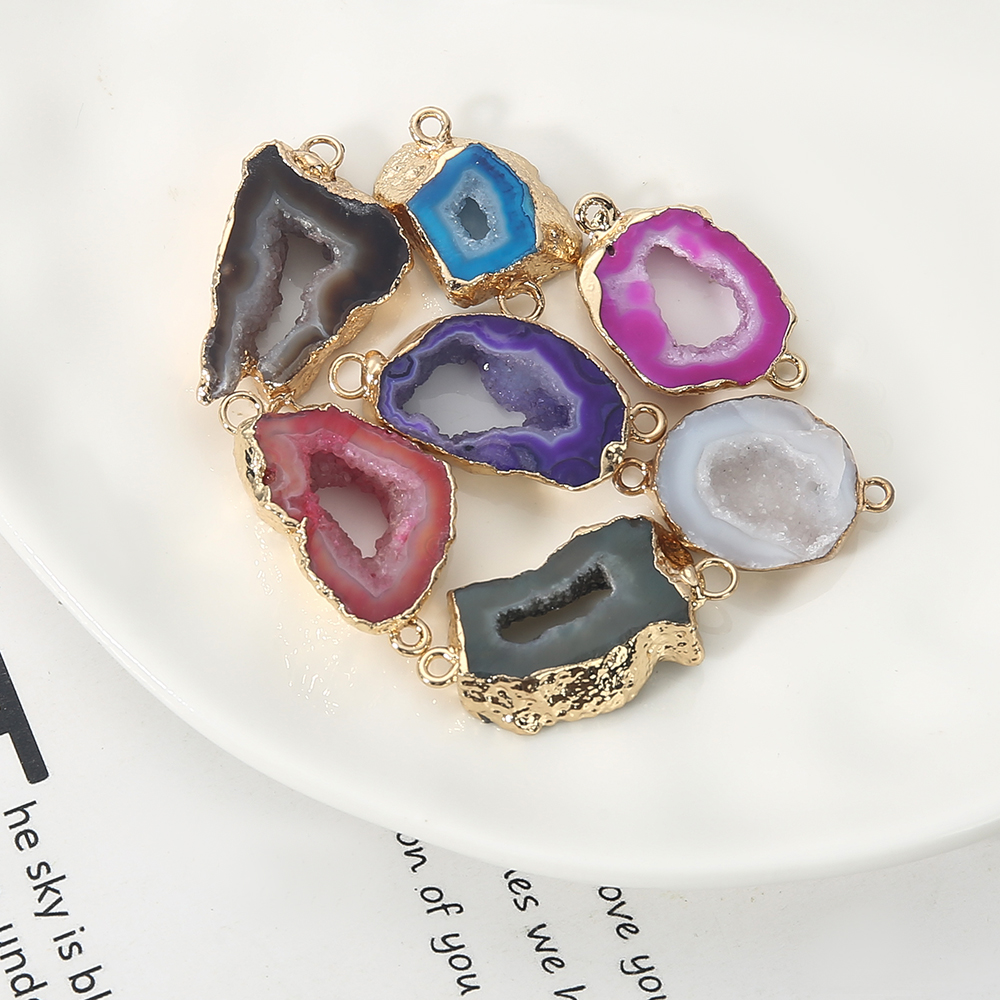 Jégkvarc Agate Connetor, Sárgaréz, -val Achát, galvanizált, DIY, több színt a választás, nikkel, ólom és kadmium mentes, 15.80x5.16x30.64mm, Által értékesített PC