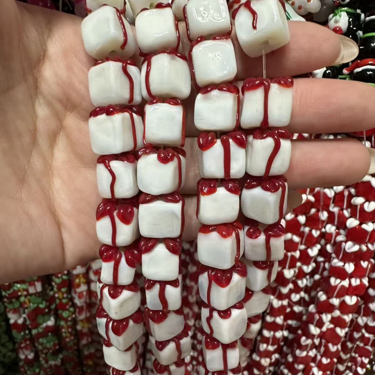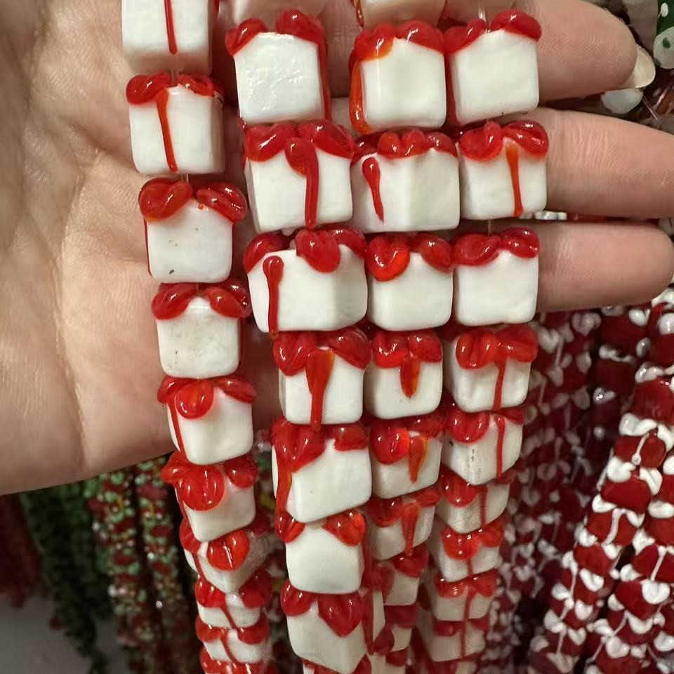 Karácsonyi Lampwork Gyöngyök, ajándék alak, DIY & zománc, több színt a választás, 16x18mm, 20PC-k/Bag, Által értékesített Bag
