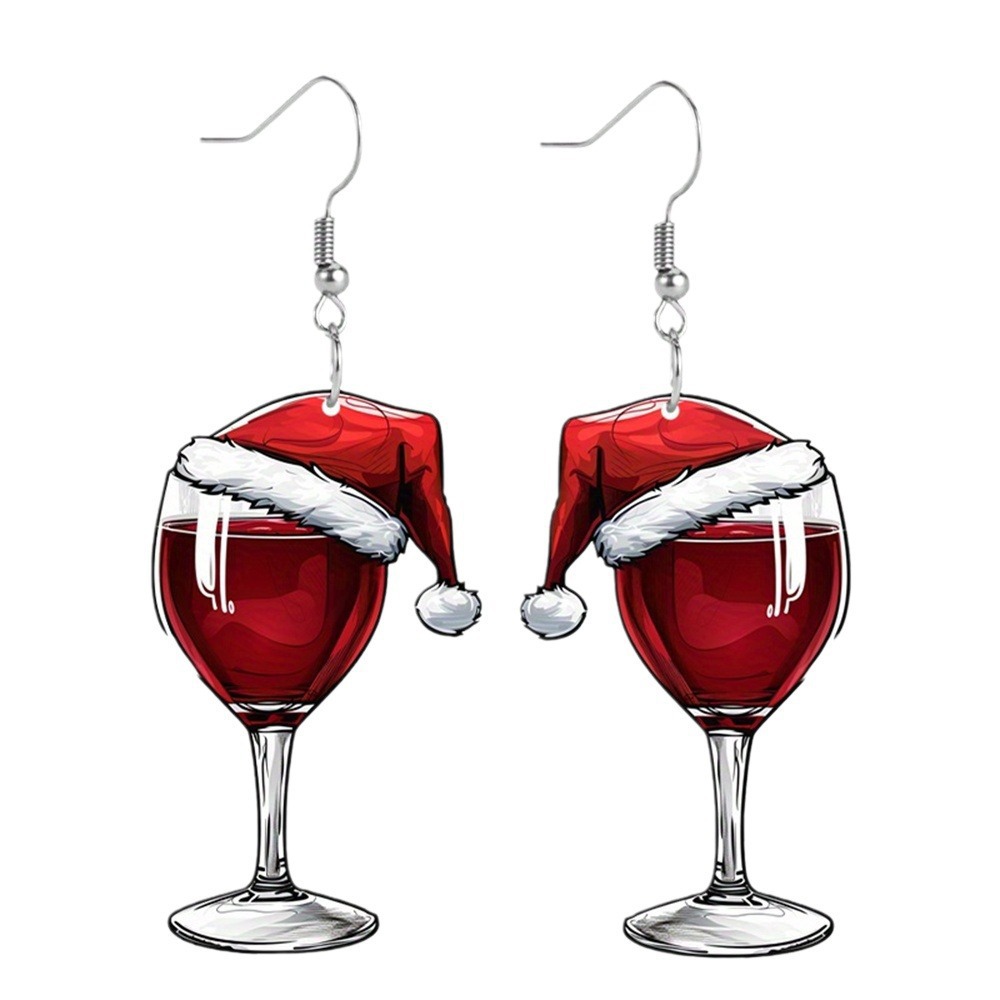 Karácsonyi fülbevaló, Akril, -val 304 rozsdamentes acél, Csésze, Nyomtatás, Karácsonyi design & a nő & kétoldalas, piros, Által értékesített pár