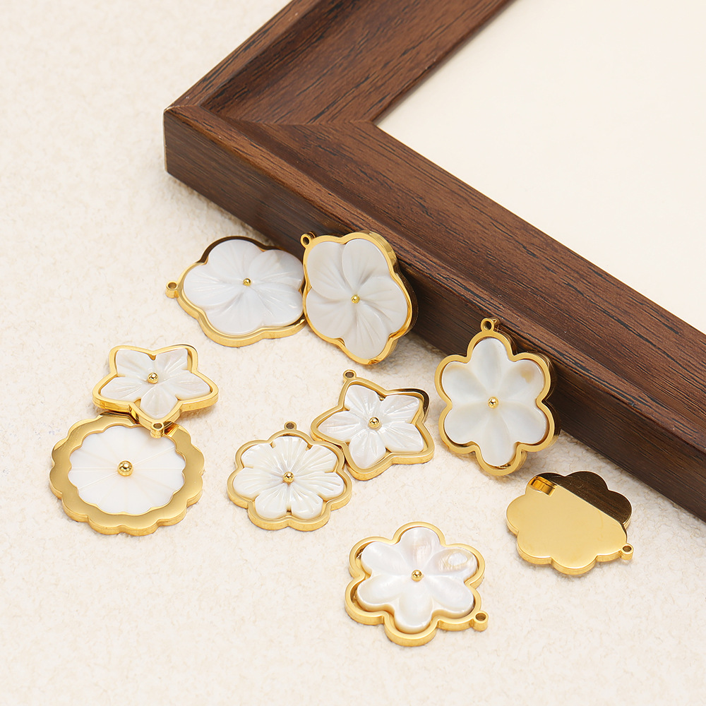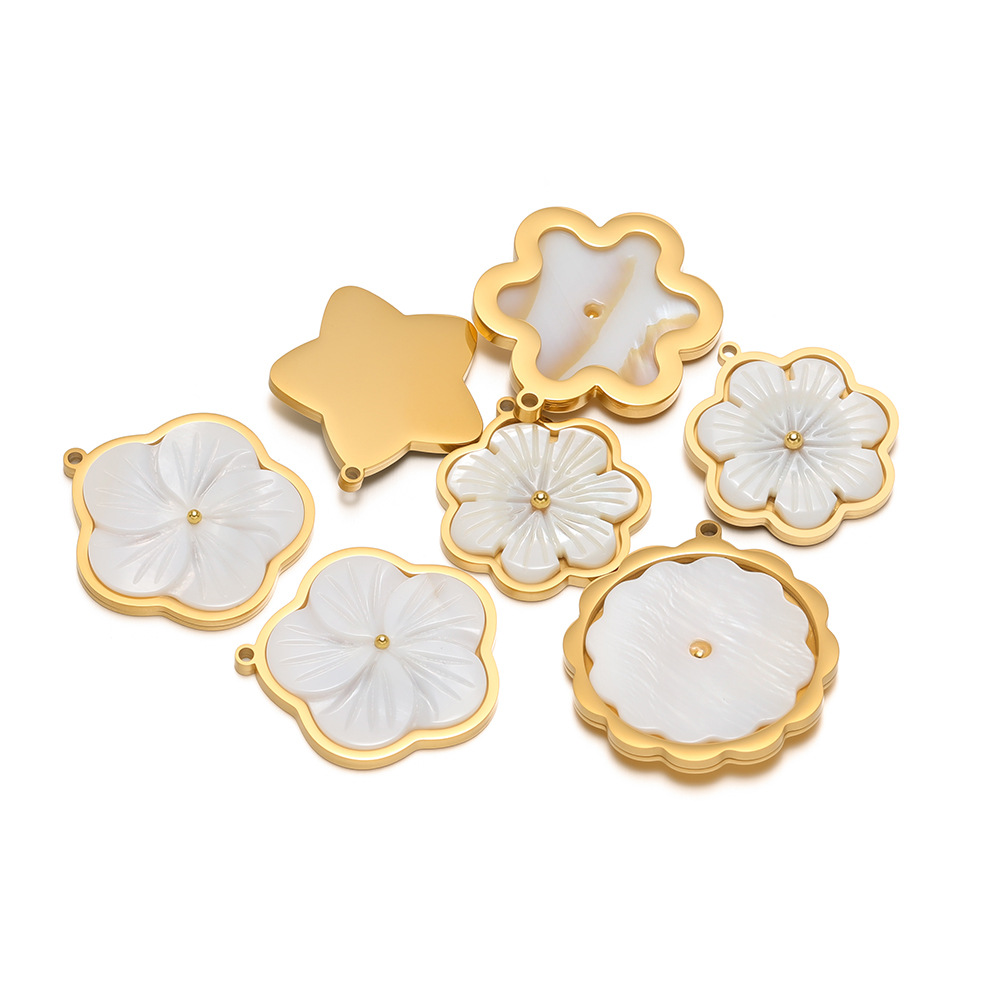Natural White Shell Medálok, 304 rozsdamentes acél, -val White Shell, Virág, arany színű aranyozott, DIY & különböző stílusokat a választás, 3PC-k/Bag, Által értékesített Bag