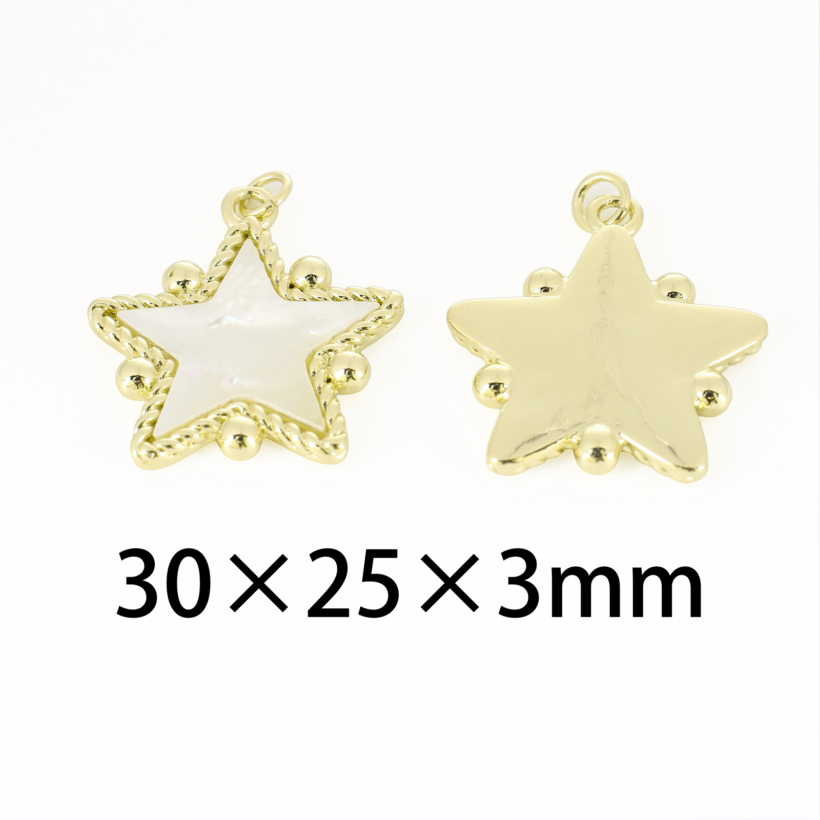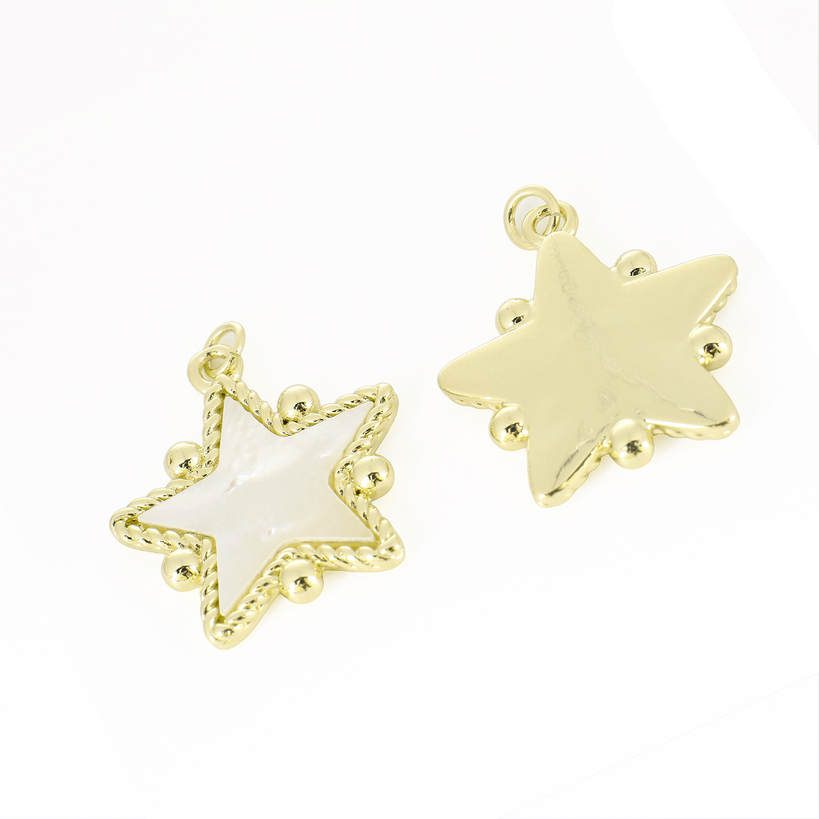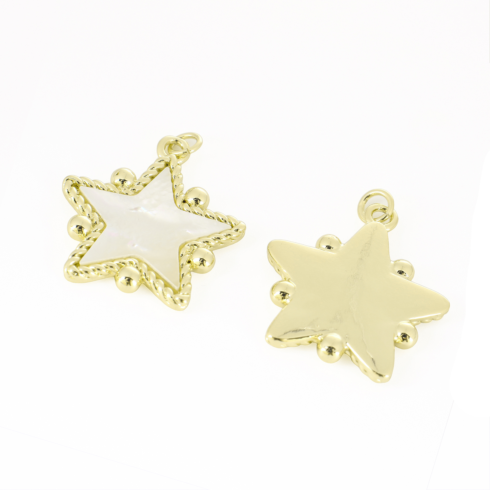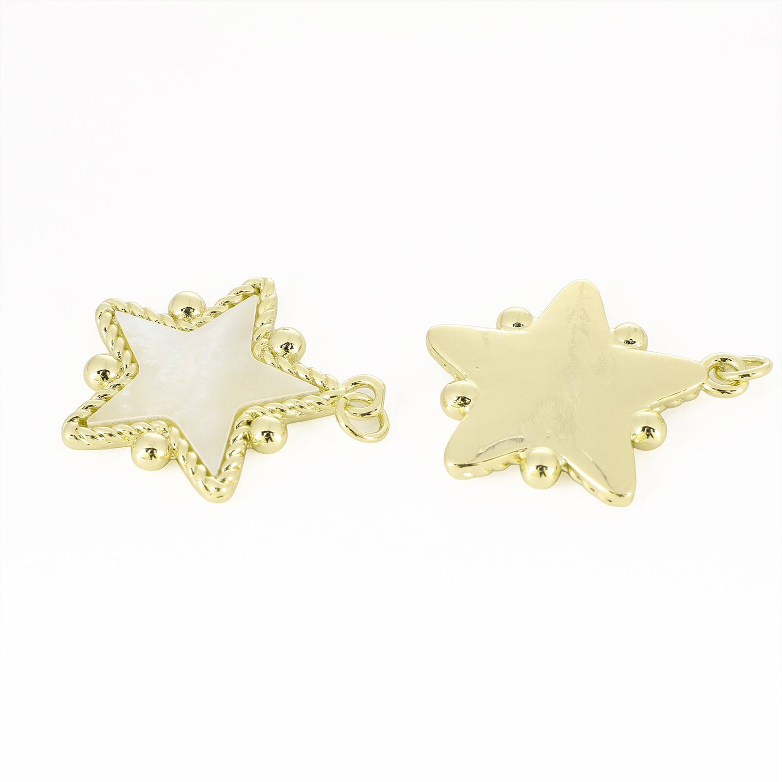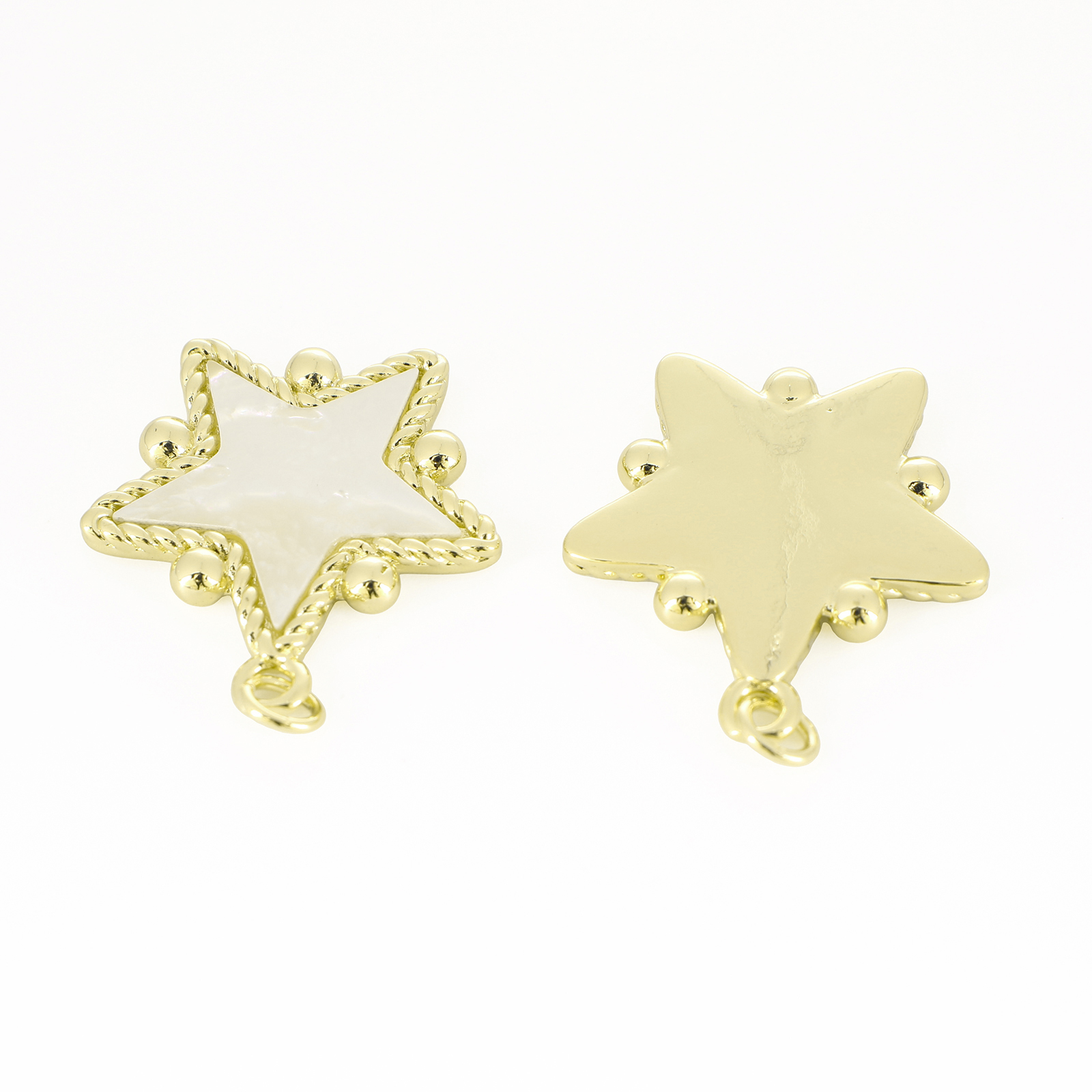 Natural White Shell Medálok, Sárgaréz, -val White Shell, Csillag, arany színű aranyozott, DIY, 30x25x3mm, Által értékesített PC