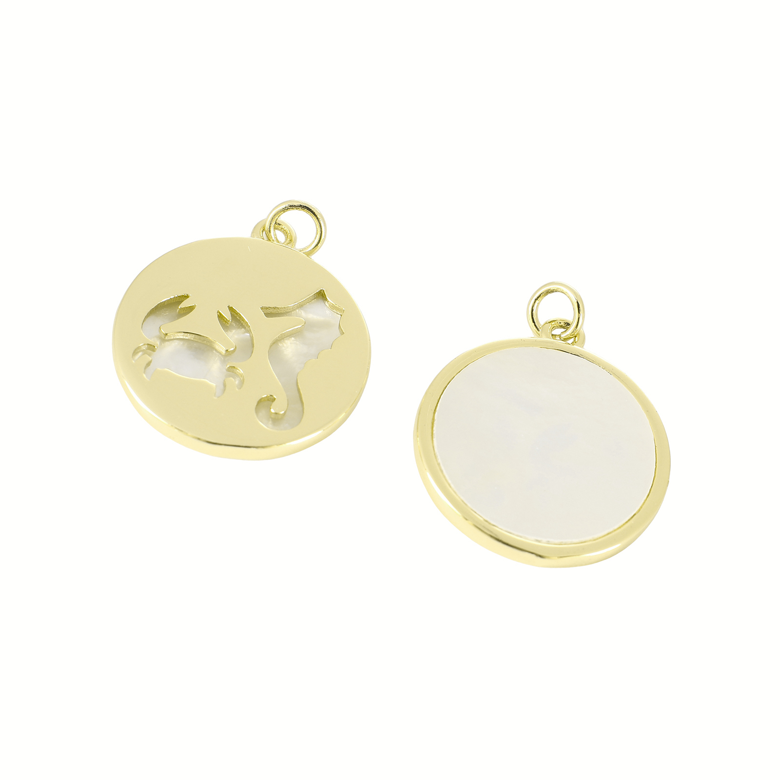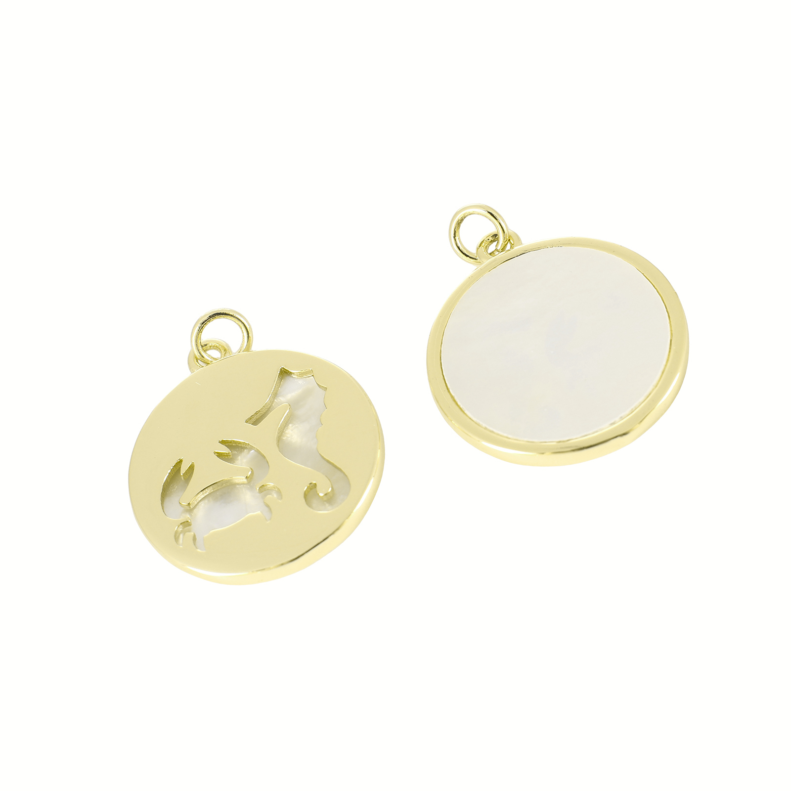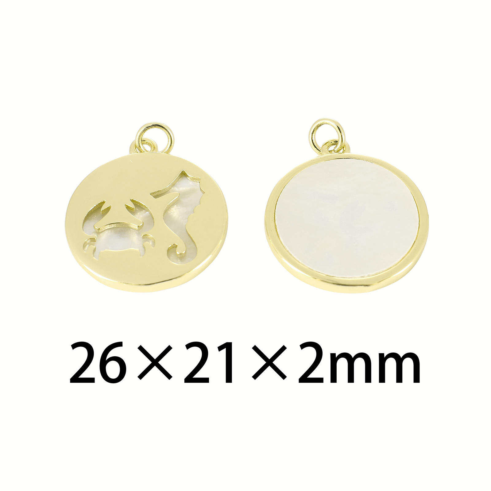 Natural White Shell Medálok, Sárgaréz, -val White Shell, Lapos kerek, arany színű aranyozott, DIY & üreges, 26x21x2mm, Által értékesített PC
