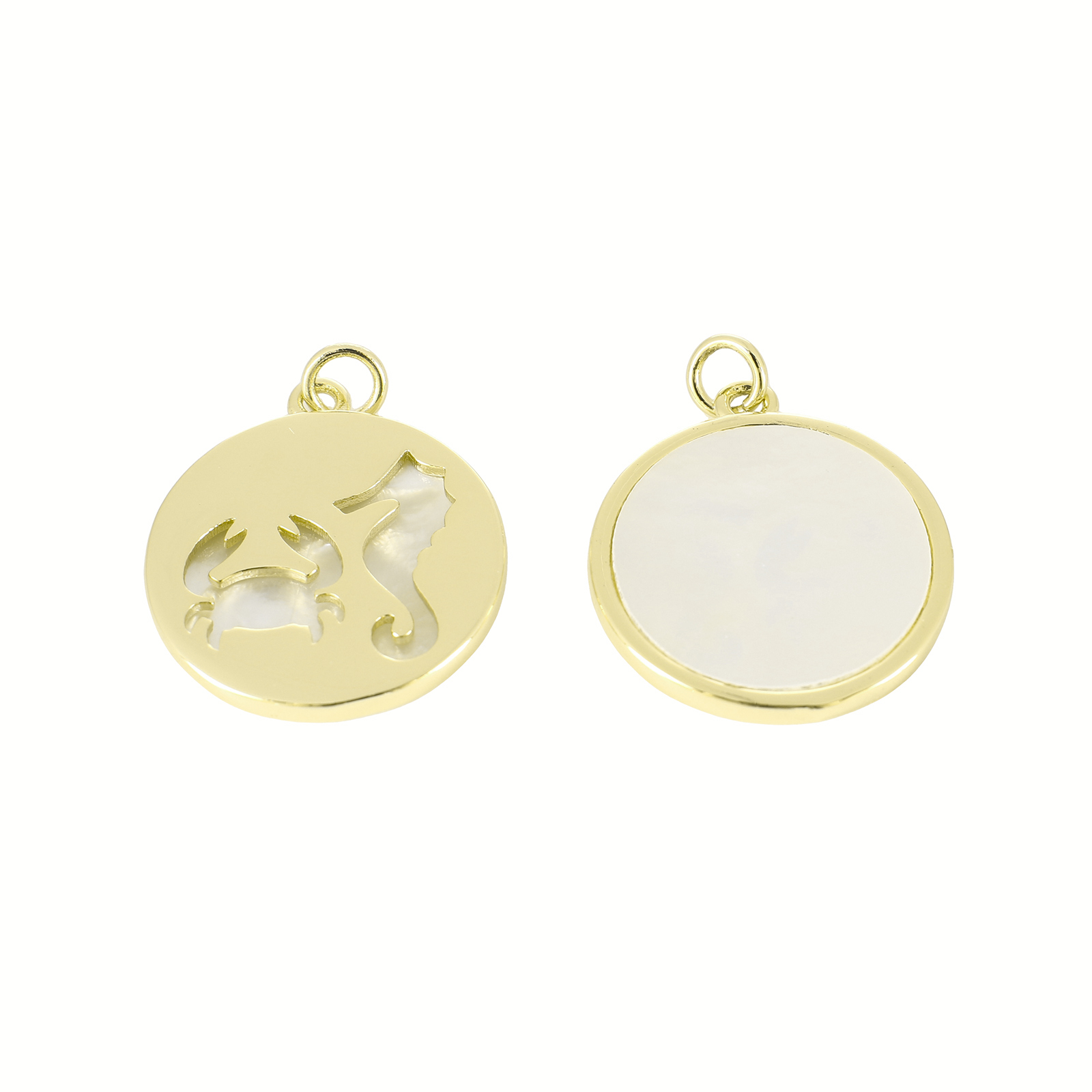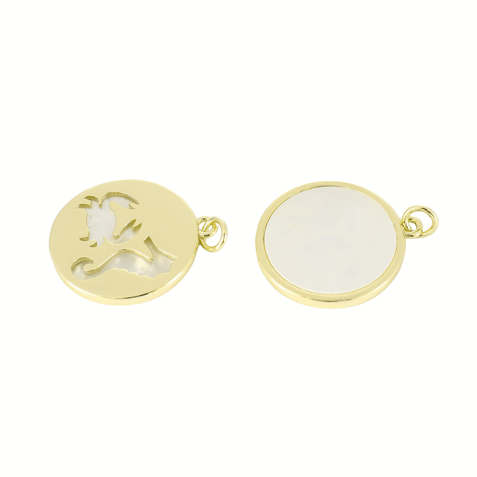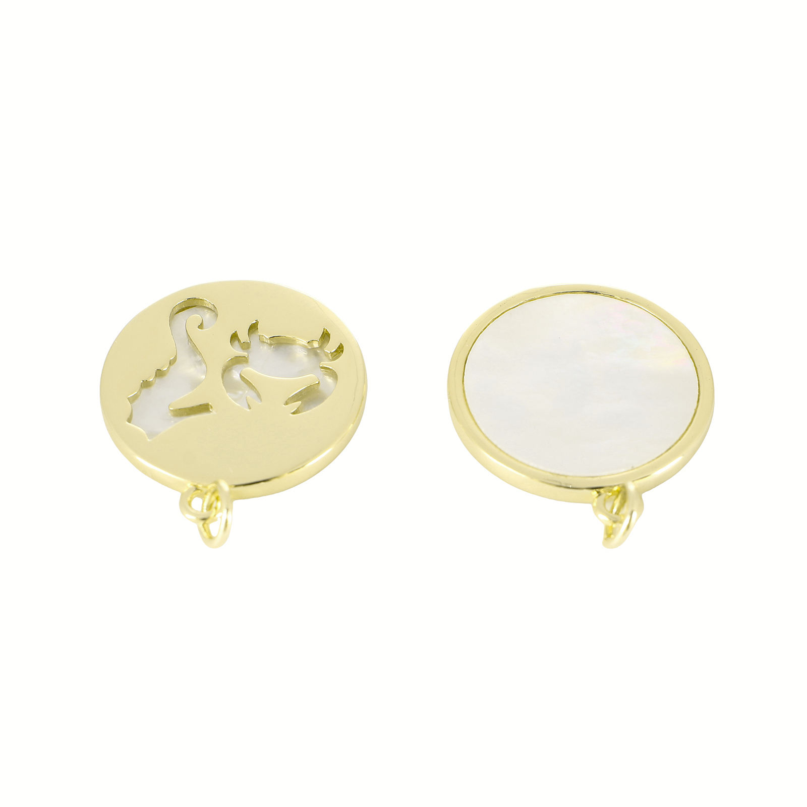 Natural White Shell Medálok, Sárgaréz, -val White Shell, Lapos kerek, arany színű aranyozott, DIY & üreges, 26x21x2mm, Által értékesített PC