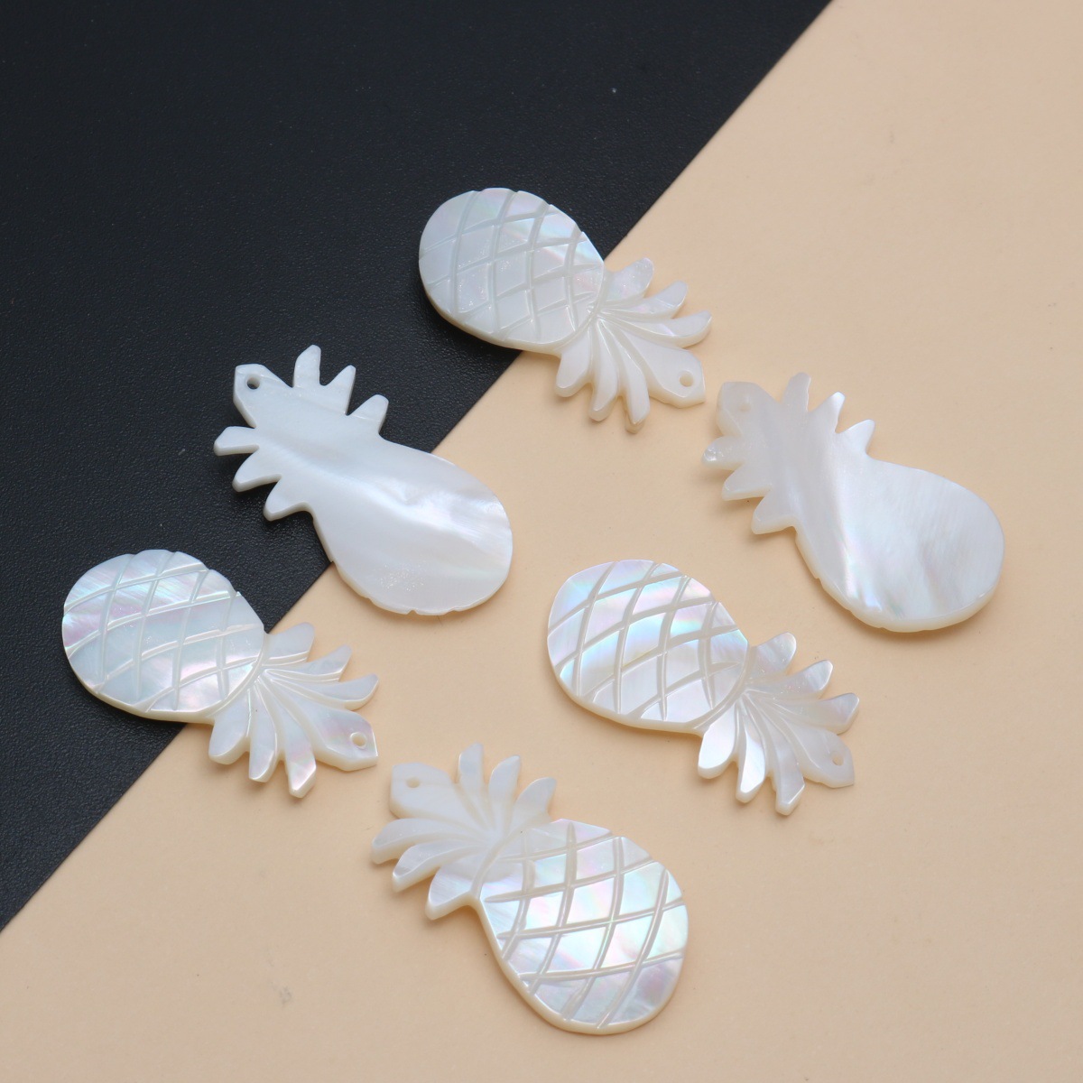 Natural White Shell Medálok, Ananász, Faragott, DIY, 13x25mm, Által értékesített PC