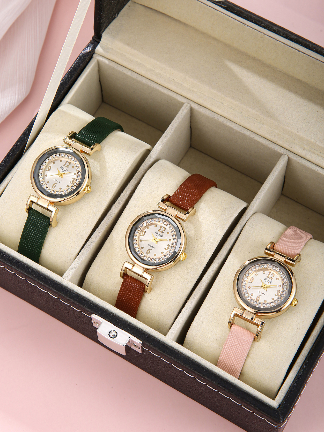 Nők Wrist Watch, Ötvözet, -val Faux Leather & Üveg & 304 rozsdamentes acél, galvanizált, divat ékszerek & a nő & strasszos, több színt a választás, Hossz 21.5 cm, Által értékesített PC