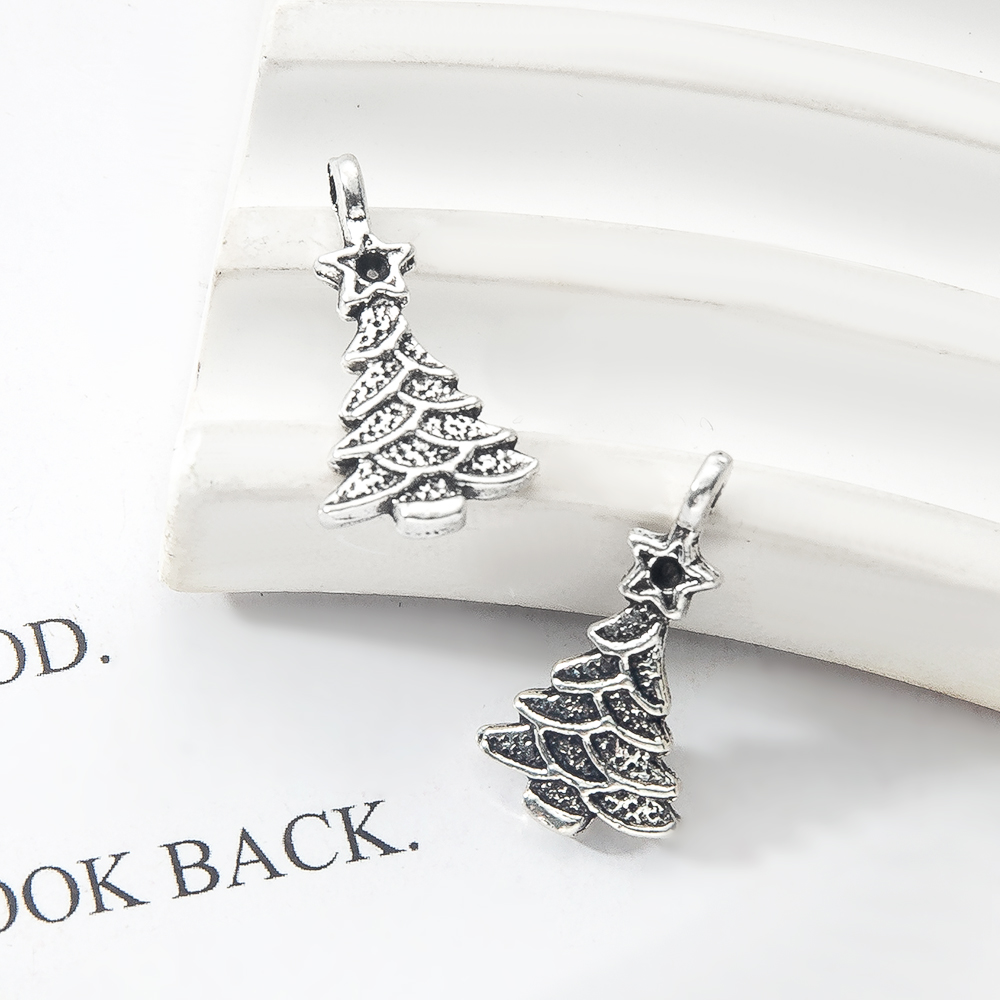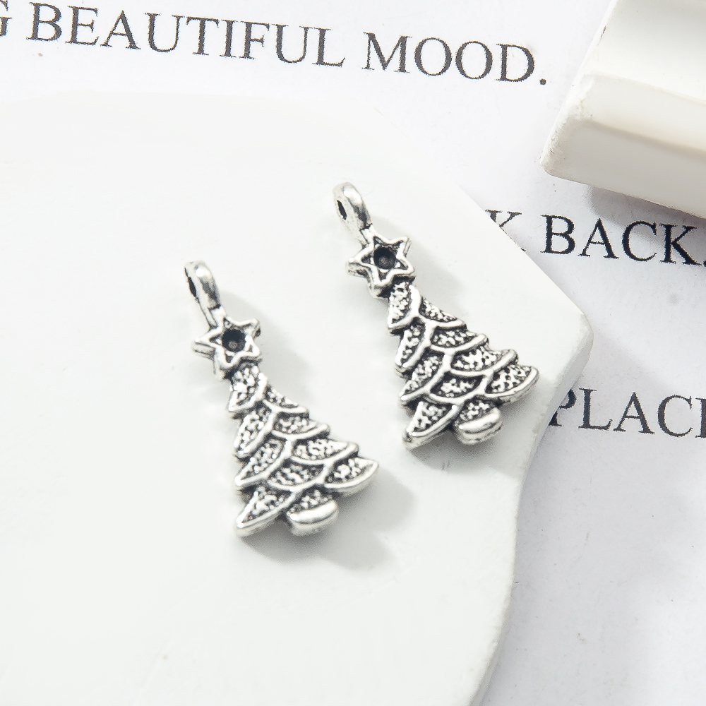 Cink ötvözet Christmas Medálok, Karácsonyfa, ezüst színű bevonattal, DIY, ezüst, 10.90x3.90x20.60mm, Által értékesített Bag