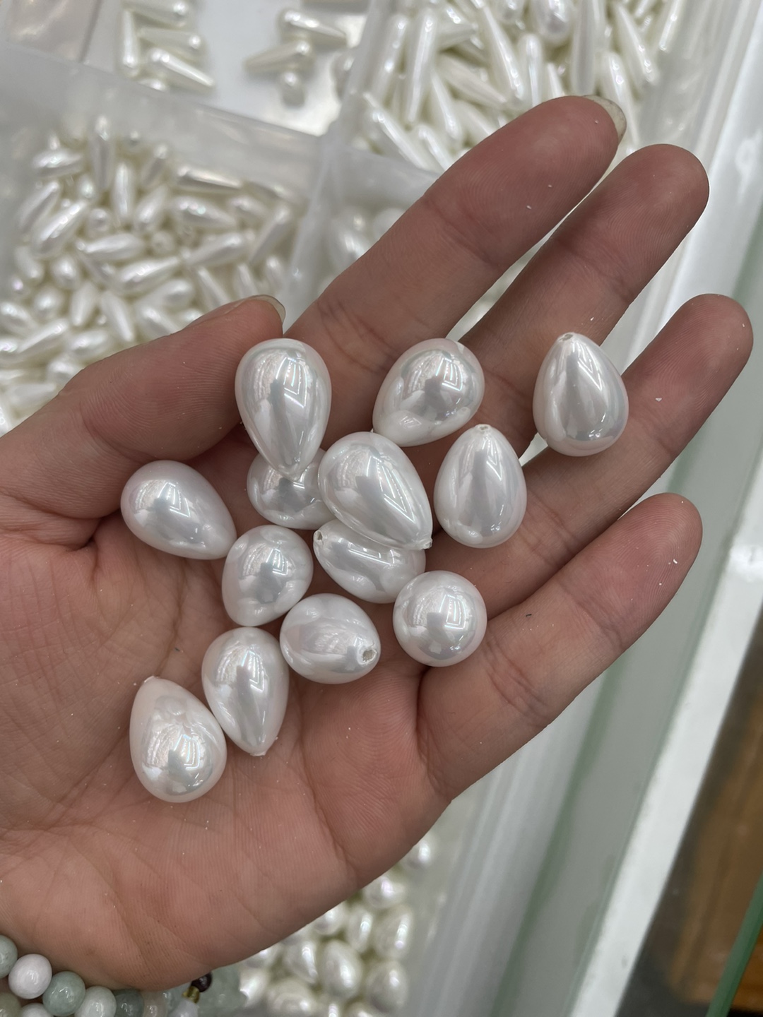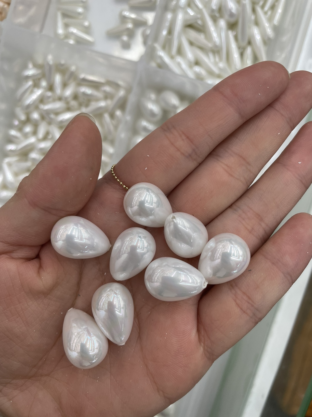 Természetes Édesvízi Shell gyöngyök, Héj, Könnycsepp, DIY, fehér, 14x19mm, Által értékesített PC