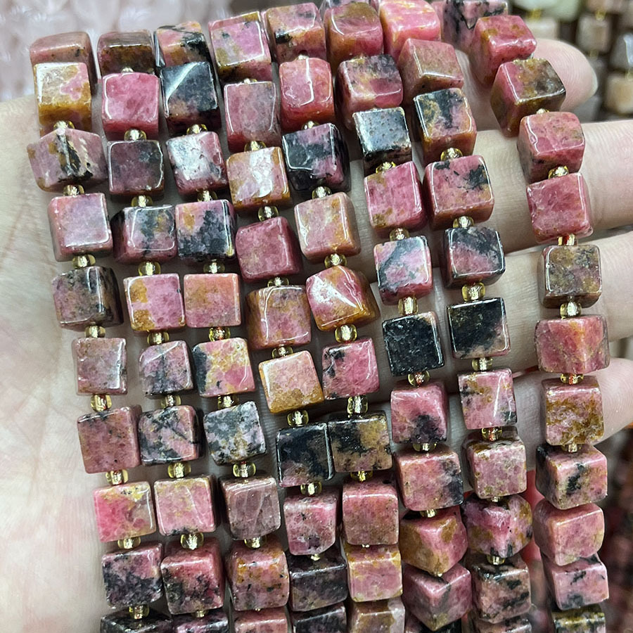 Mangánkova Gyöngyök, Rhodonite között, Négyzet, DIY, kevert színek, Naponta eladott Kb 38 cm Strand