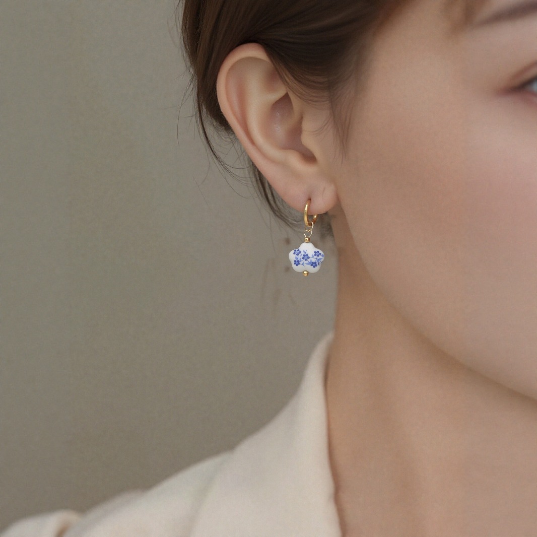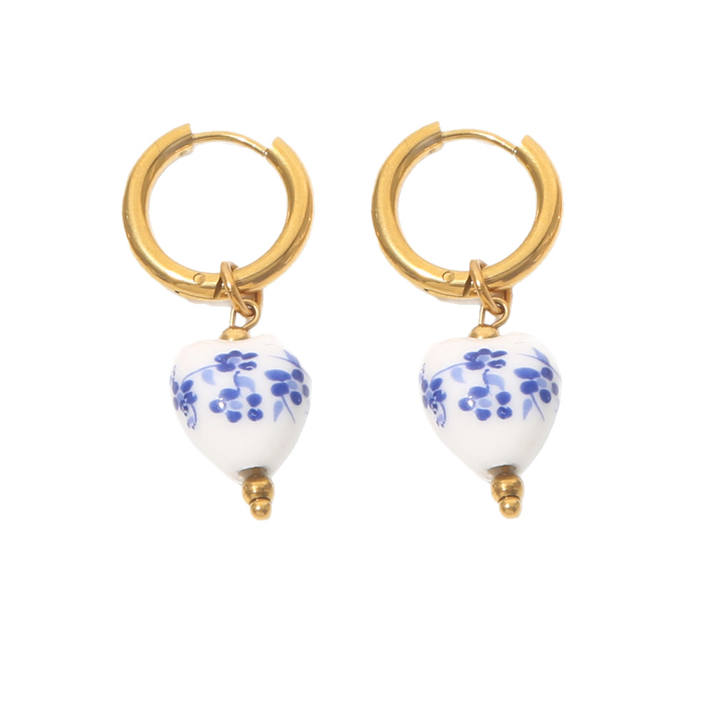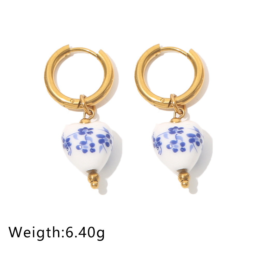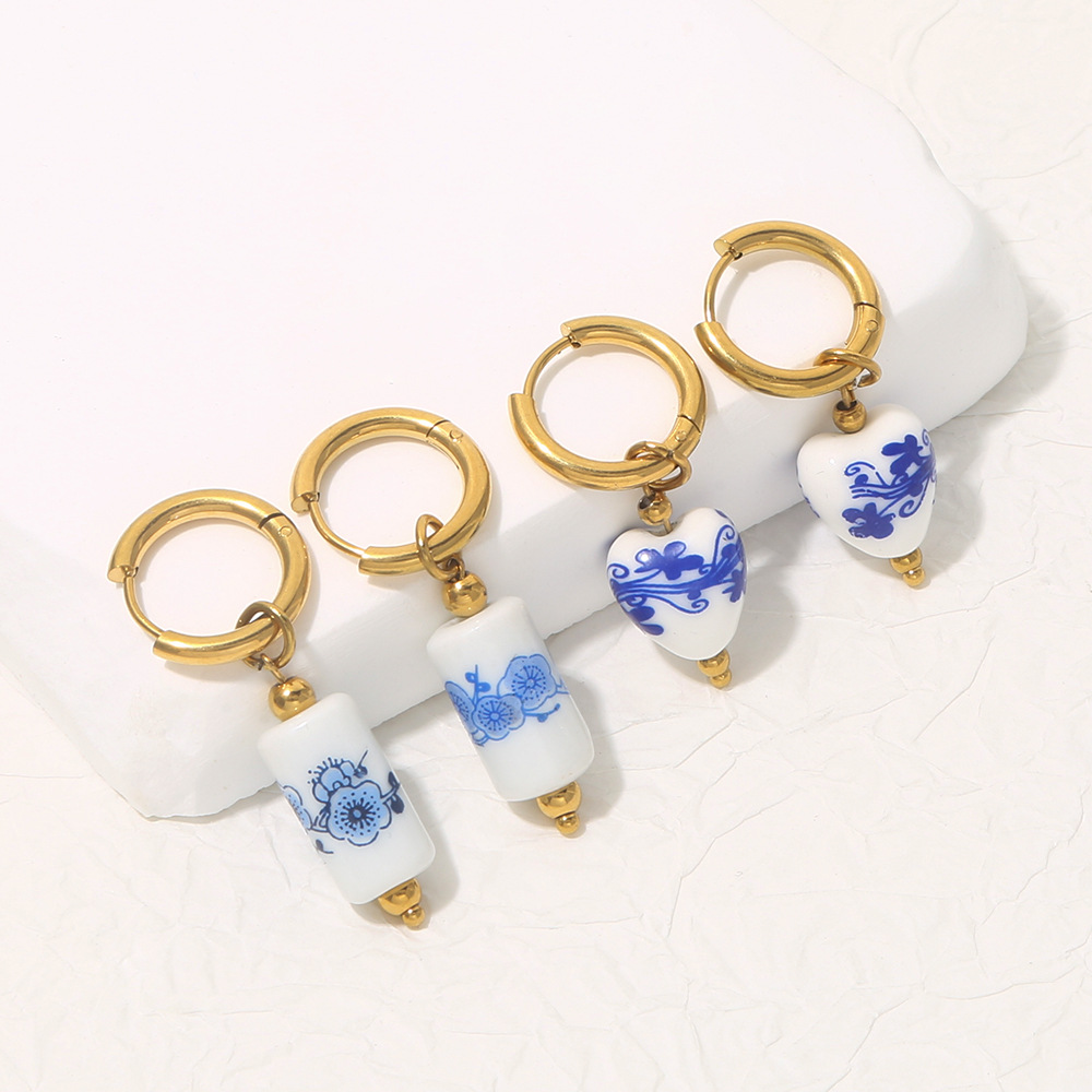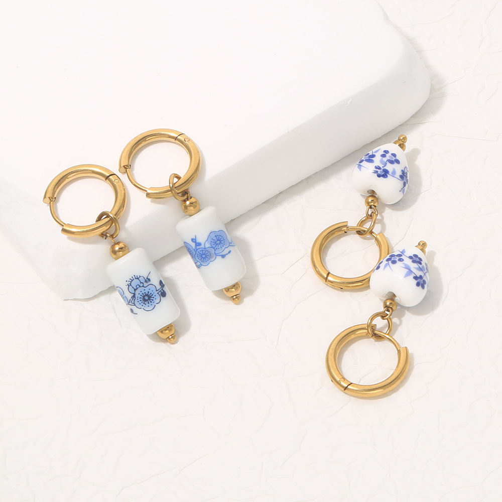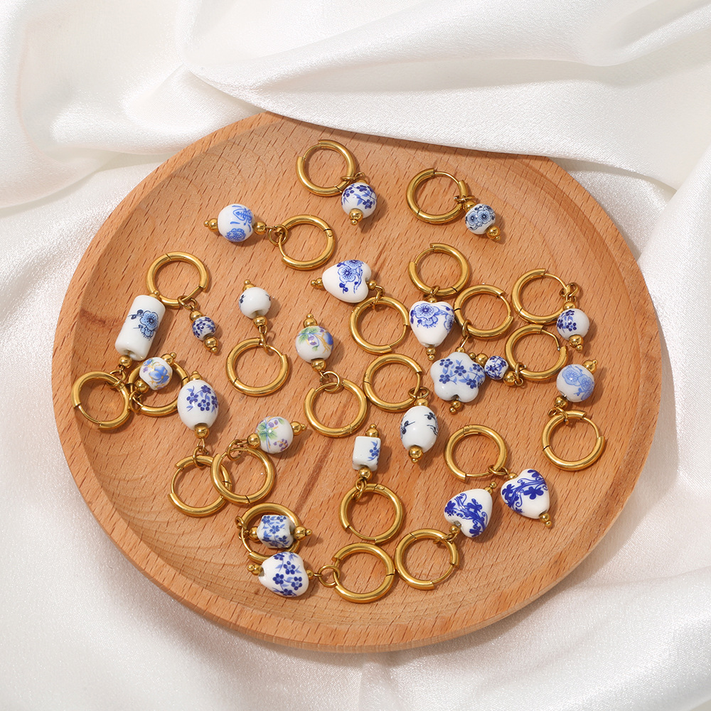 Porcelán Fülbevaló, 304 rozsdamentes acél, -val Porcelán, galvanizált, divat ékszerek & nyomtatás, több színt a választás, Által értékesített pár