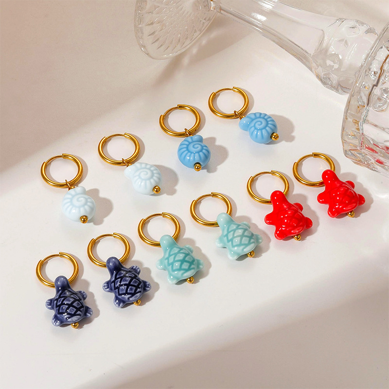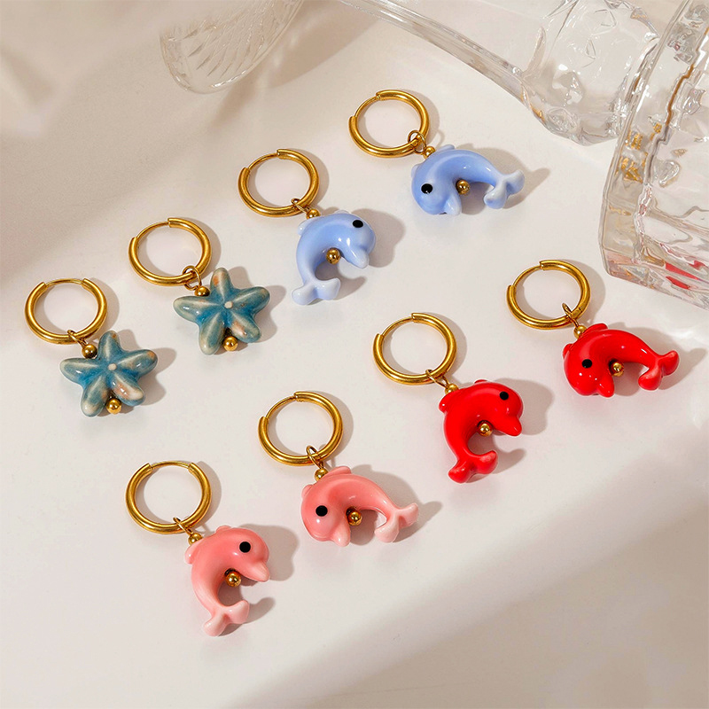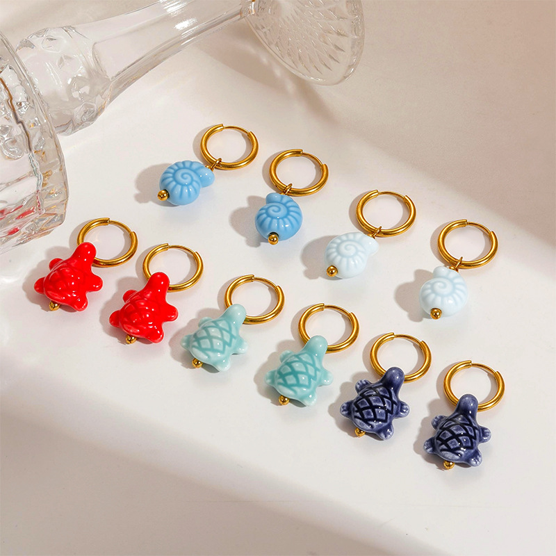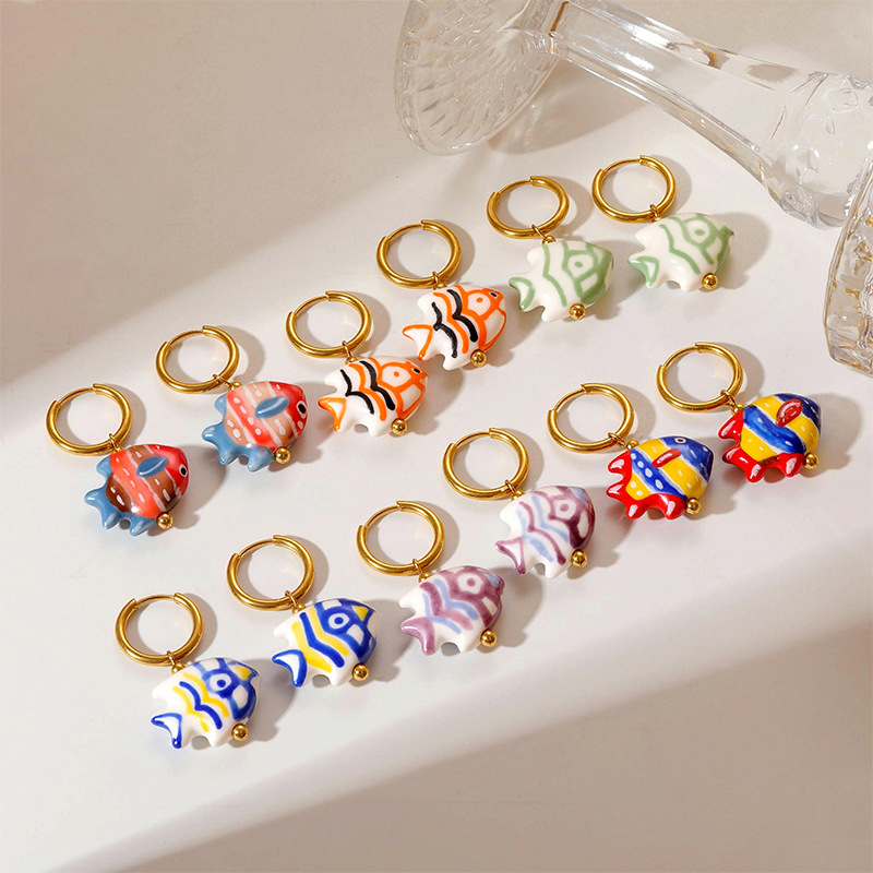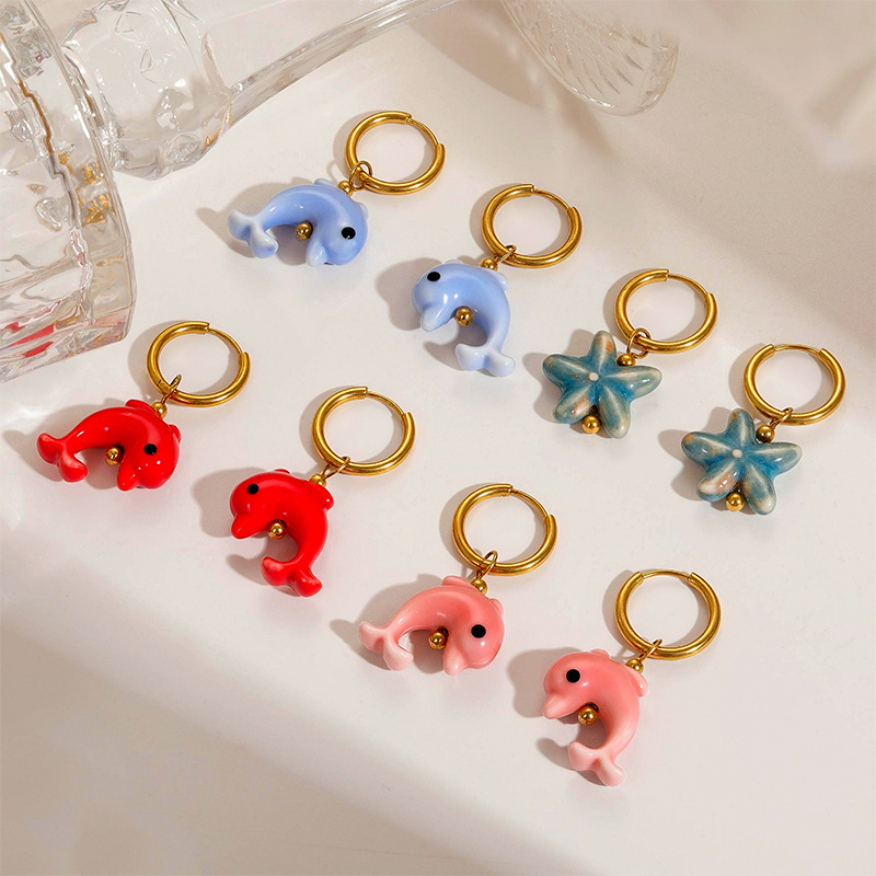 Porcelán Fülbevaló, 304 rozsdamentes acél, -val Porcelán, arany színű aranyozott, különböző stílusokat a választás & a nő & zománc, több színt a választás, Által értékesített pár