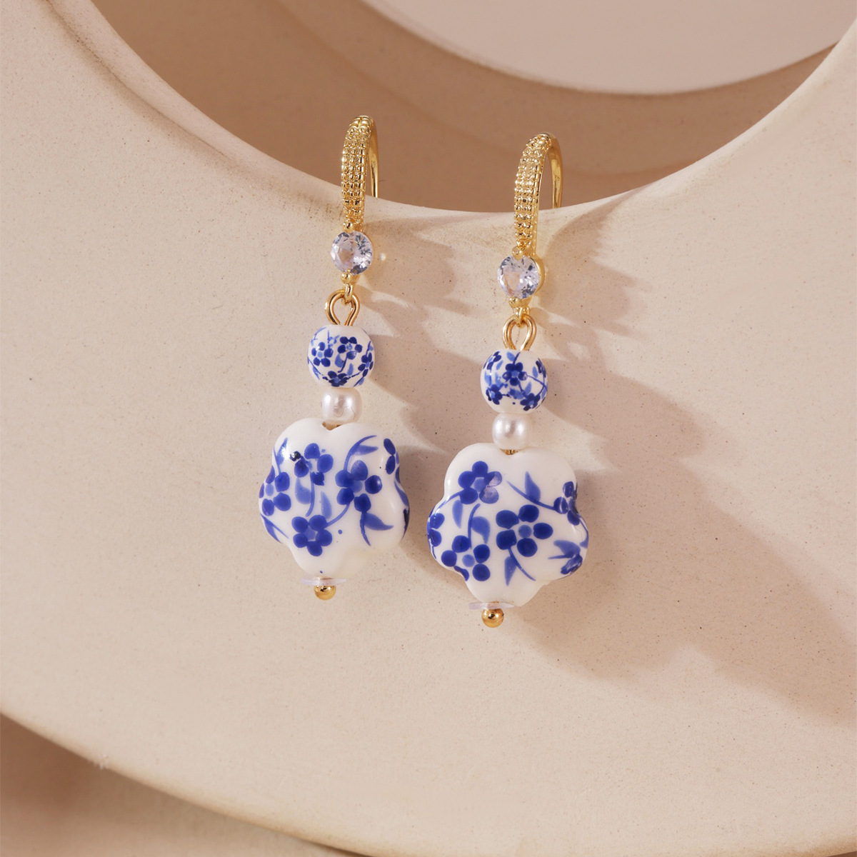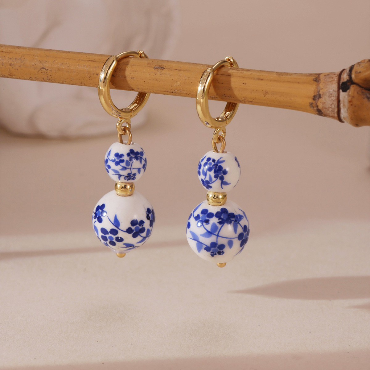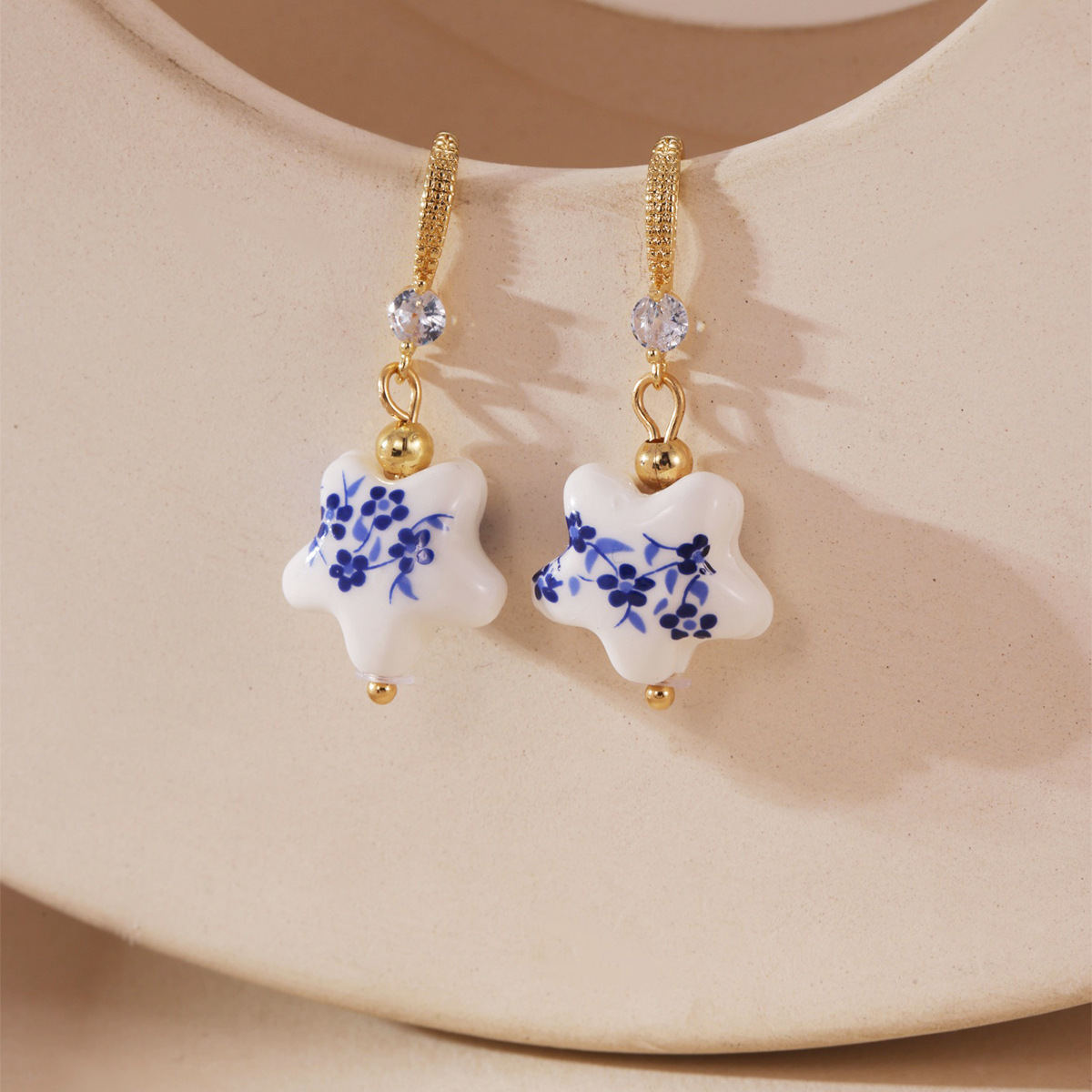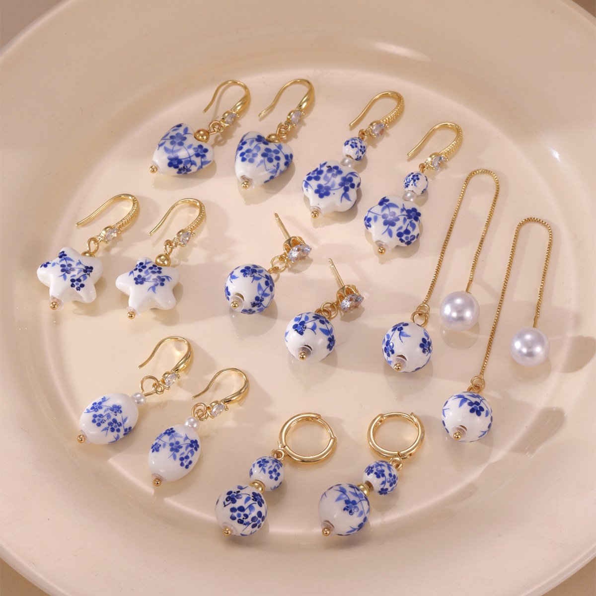 Porcelán Fülbevaló, 304 rozsdamentes acél, -val Porcelán, galvanizált, divat ékszerek & különböző stílusokat a választás & a nő, aranysárga, Által értékesített pár