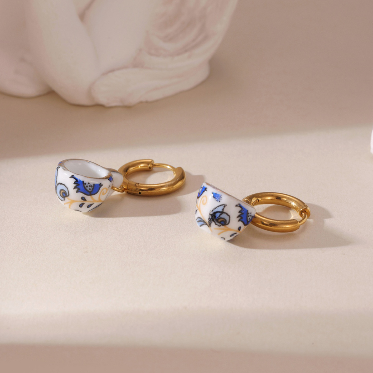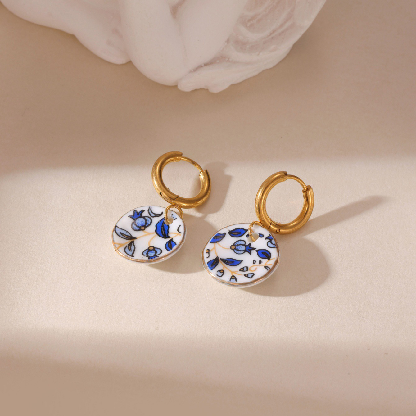 Porcelán Fülbevaló, 304 rozsdamentes acél, -val Porcelán, 18K aranyozott, különböző stílusokat a választás & különböző modellek a választás & a nő, Által értékesített pár