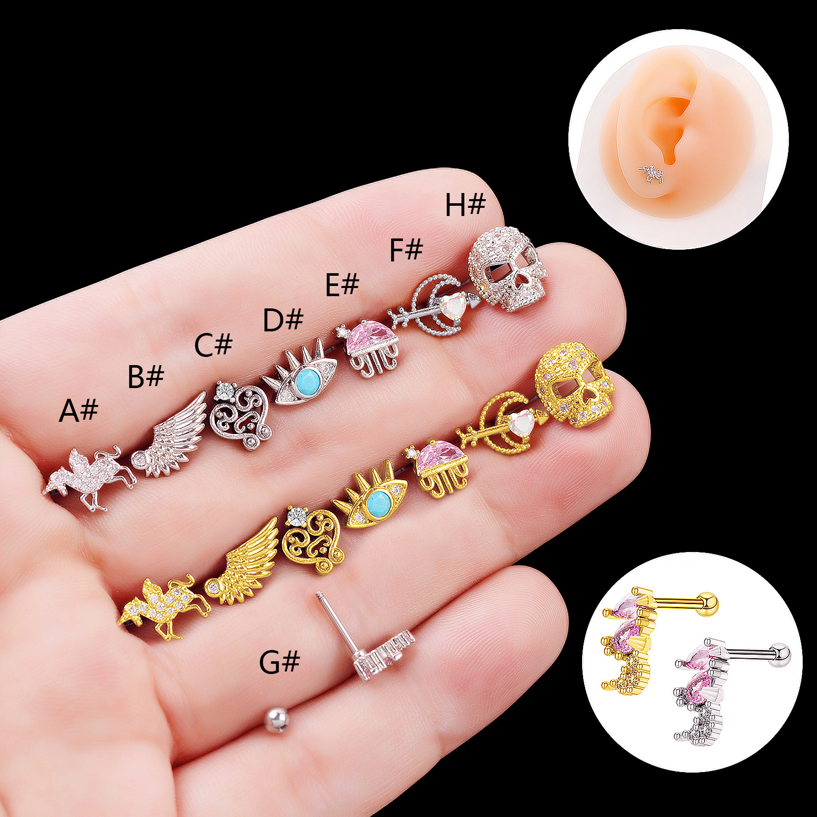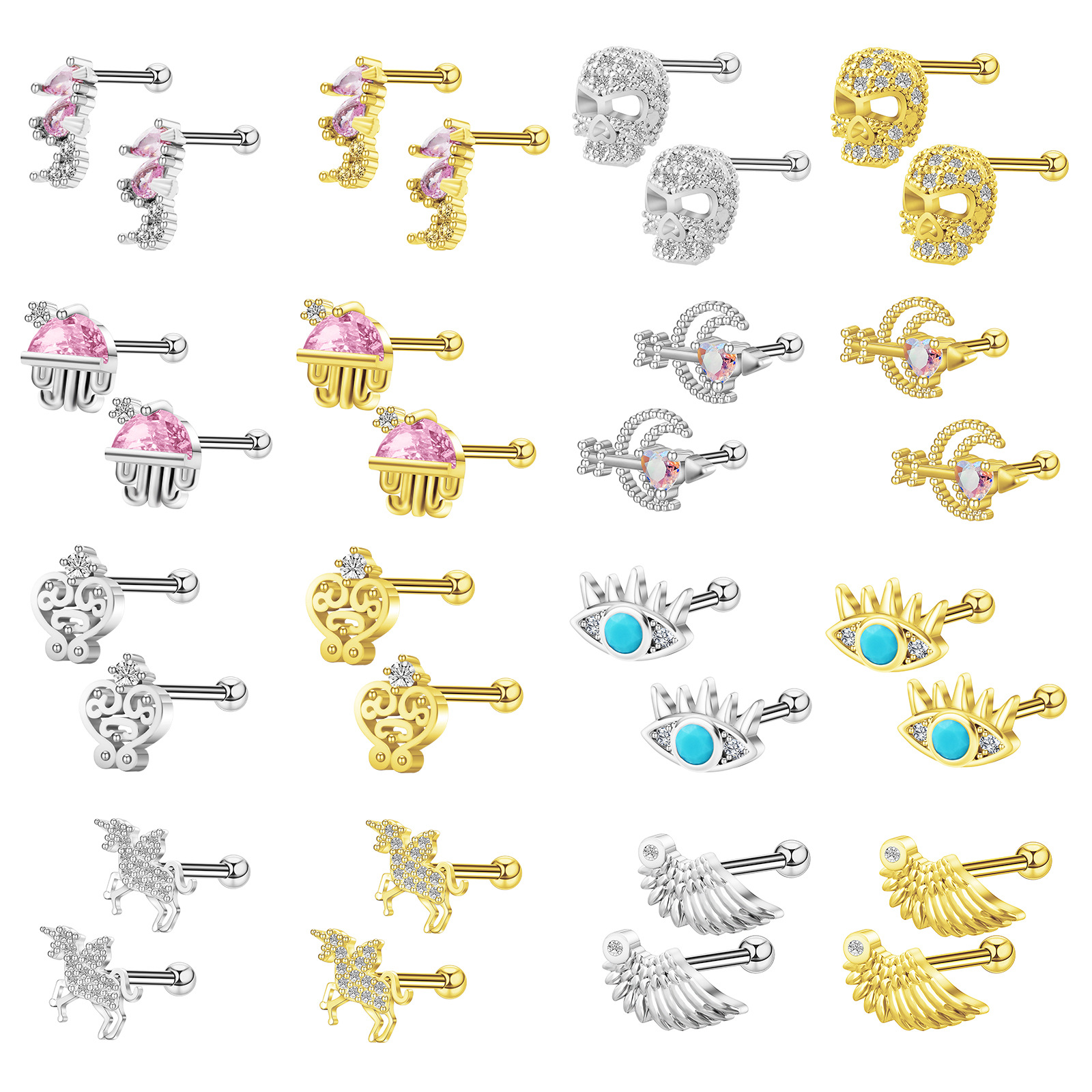 Rozsdamentes acél Ear Piercing ékszerek, 304 rozsdamentes acél, -val Sárgaréz, galvanizált, divat ékszerek & mikro egyengetni cirkónia, több színt a választás, 1.60x6mm, Által értékesített PC