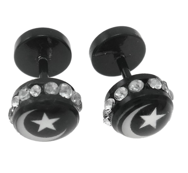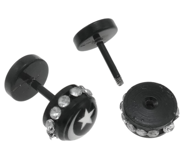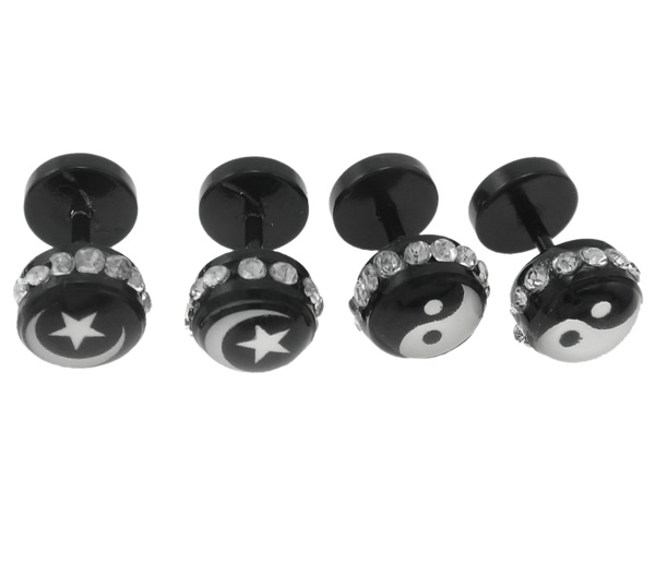 Rozsdamentes acél Ear Piercing ékszerek, Stainless Steel, Lapos kerek, fekete ionos, különböző modellek a választás & epoxy matrica & strasszos, 8x12.5mm, Által értékesített pár