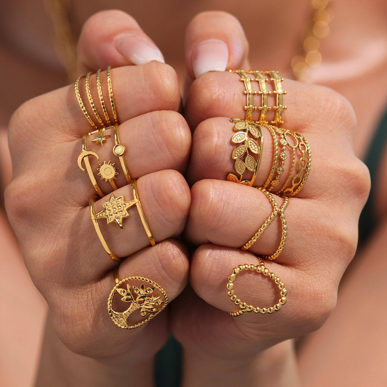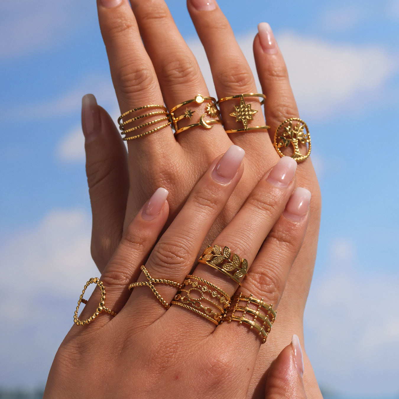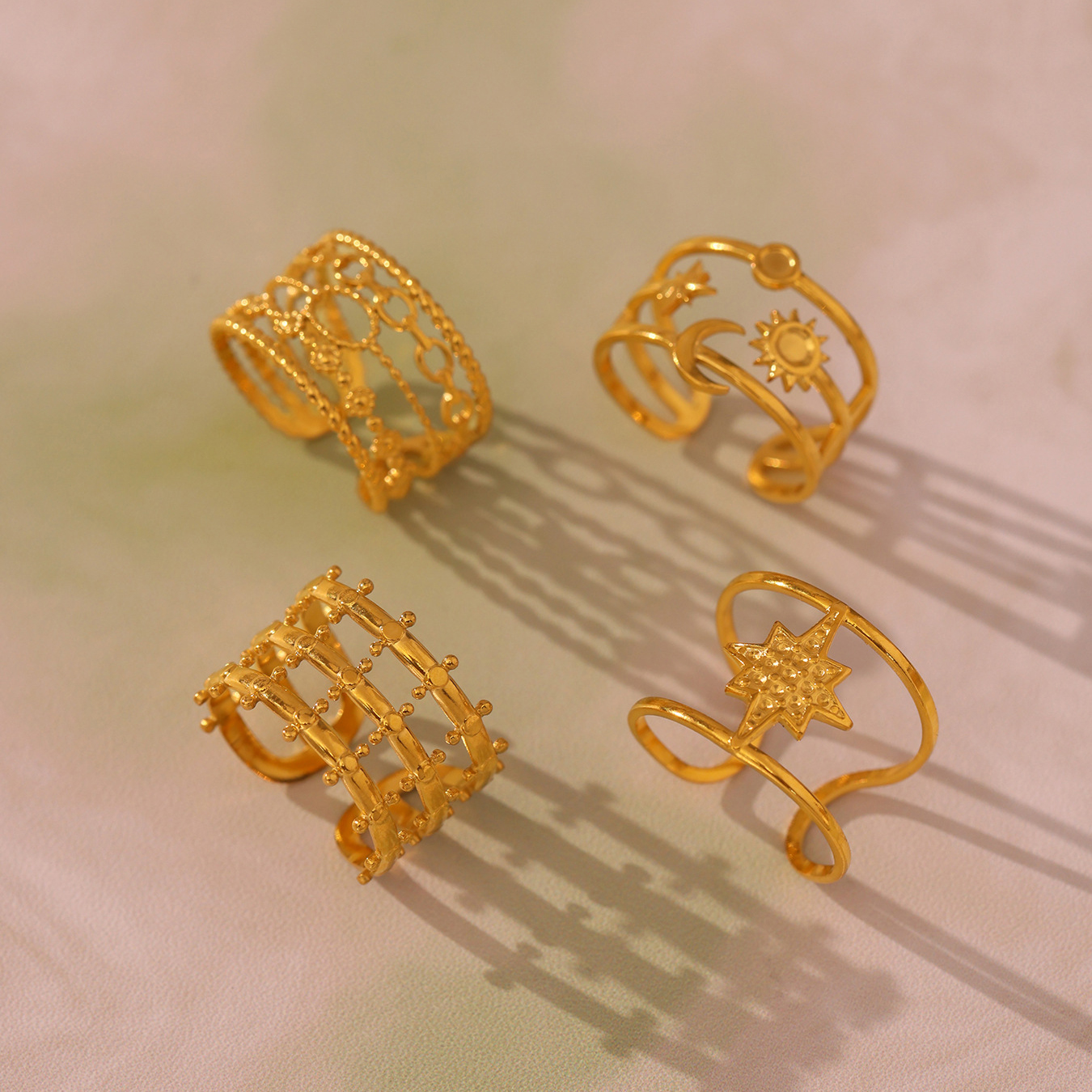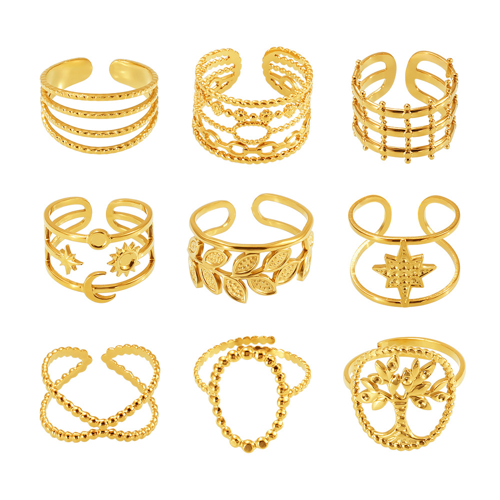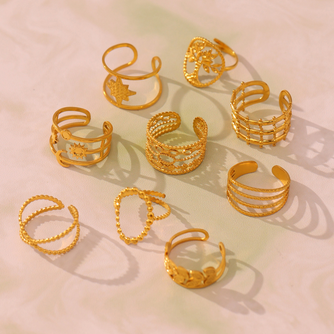 Rozsdamentes acél Finger Ring, 304 rozsdamentes acél, 18K aranyozott, különböző stílusokat a választás & a nő & üreges, Méret:7, Által értékesített PC