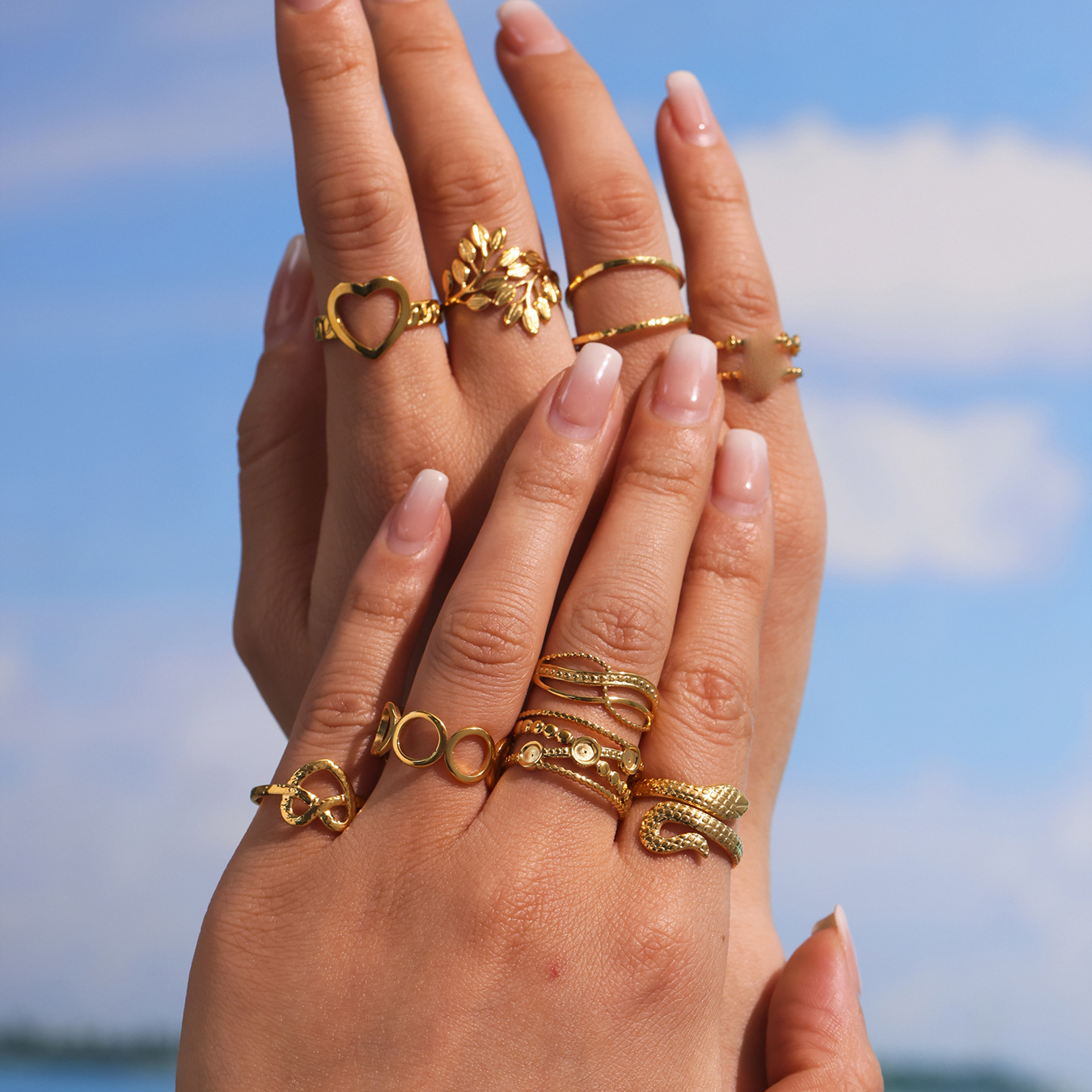Rozsdamentes acél Finger Ring, 304 rozsdamentes acél, 18K aranyozott, különböző stílusokat a választás & a nő & üreges, Méret:7, Által értékesített PC