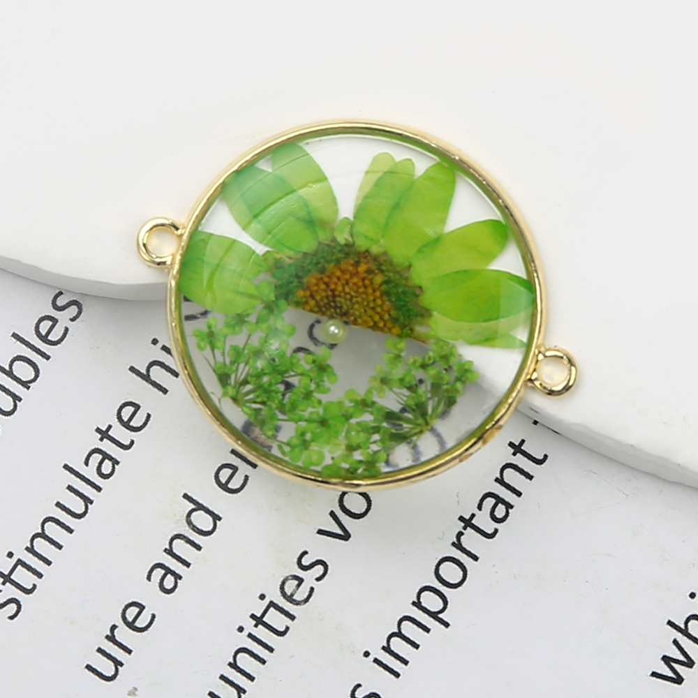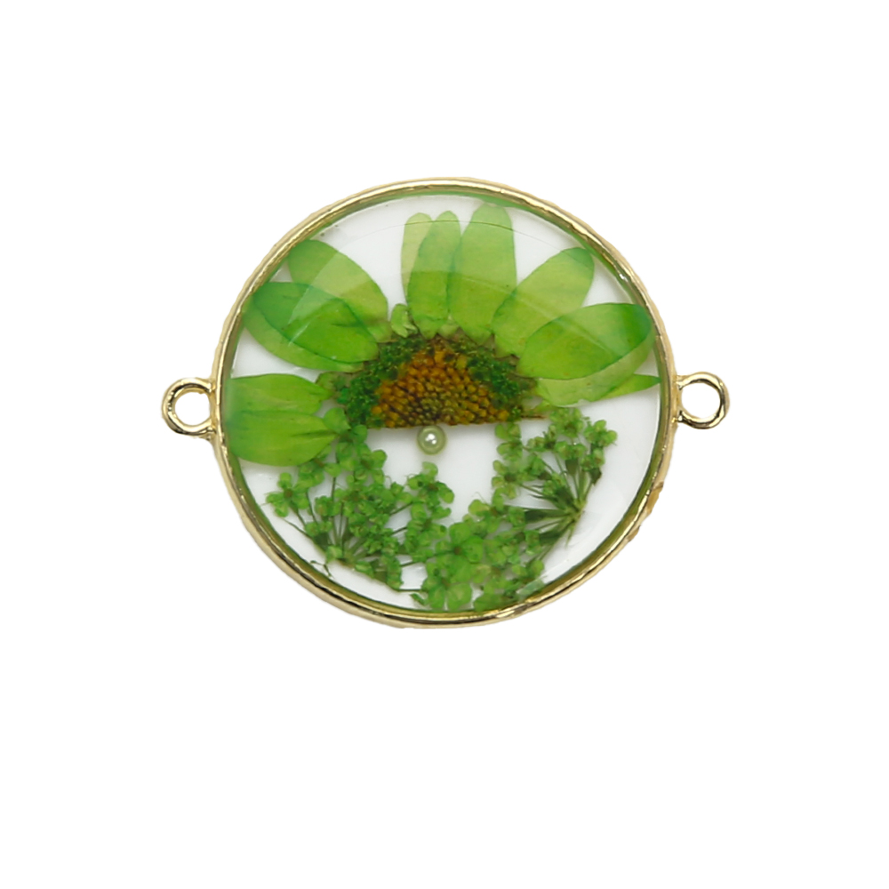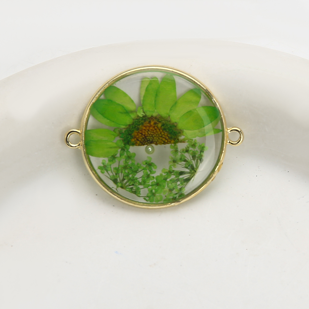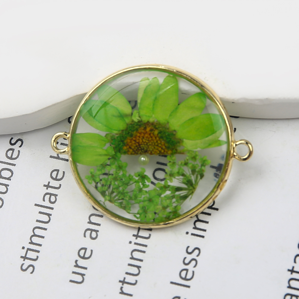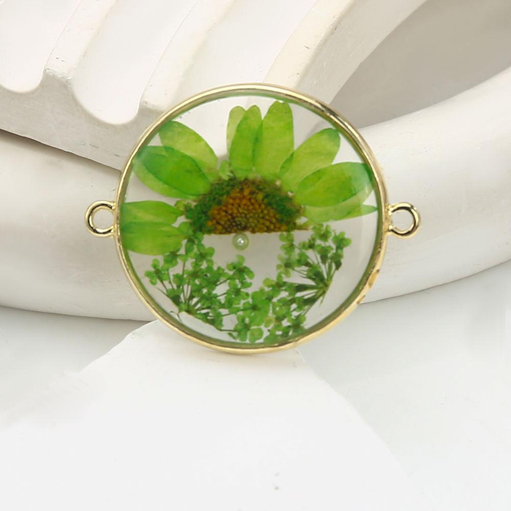 Sárgaréz Connector, -val Szárított virág & Gyanta & Műanyag Pearl, galvanizált, DIY, kevert színek, nikkel, ólom és kadmium mentes, 28.92x3.45x35.83mm, Által értékesített PC