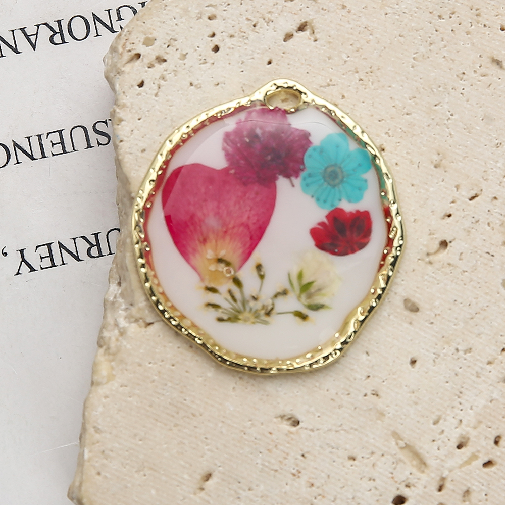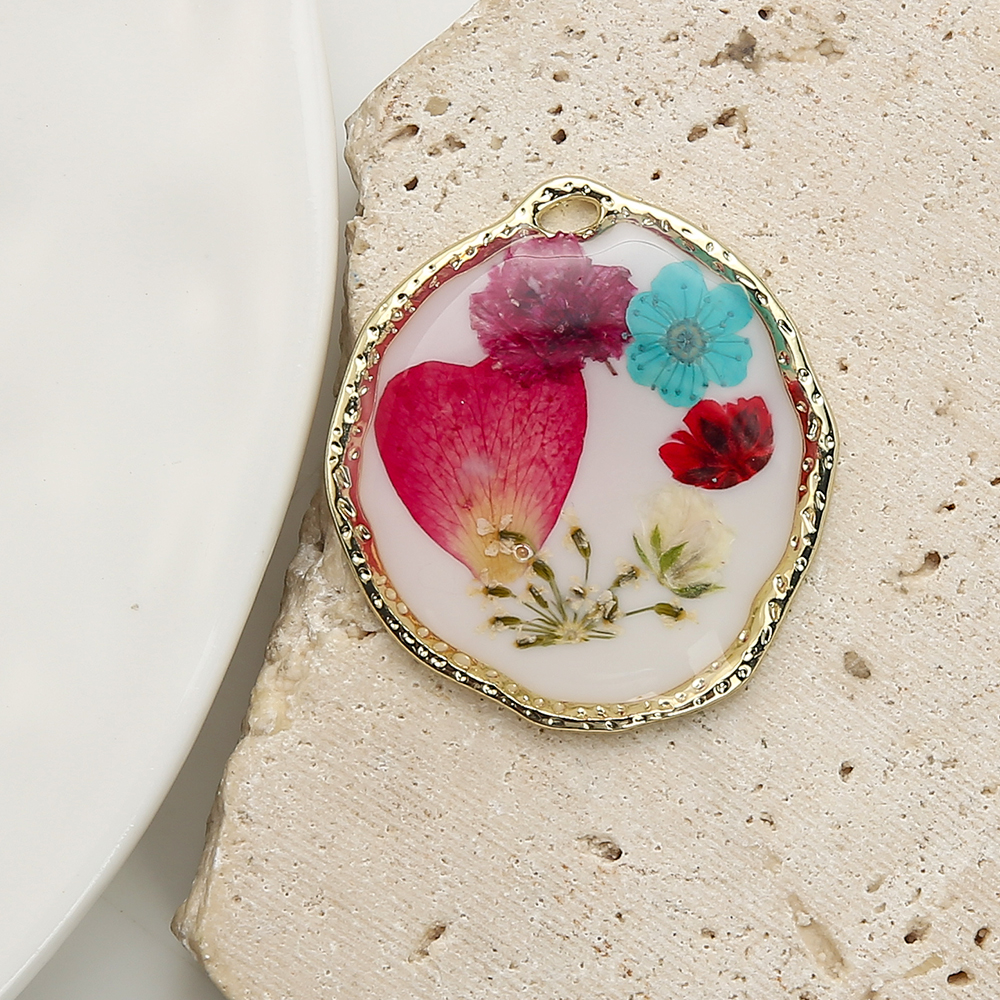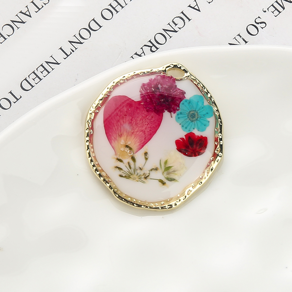 Sárgaréz Függő, -val Szárított virág & Gyanta, galvanizált, DIY, kevert színek, nikkel, ólom és kadmium mentes, 30.83x3.06x33.79mm, Által értékesített PC