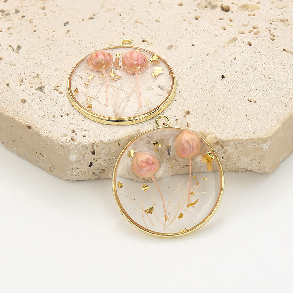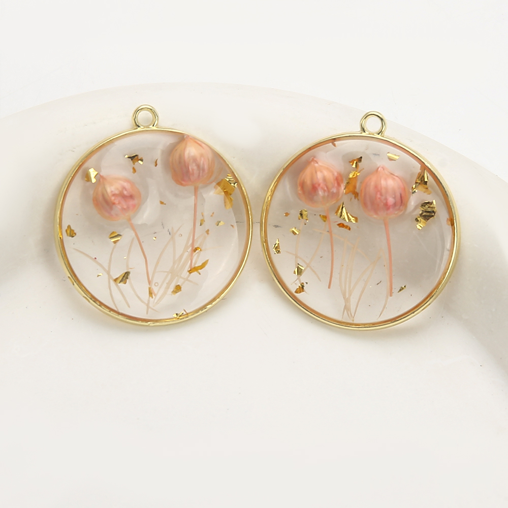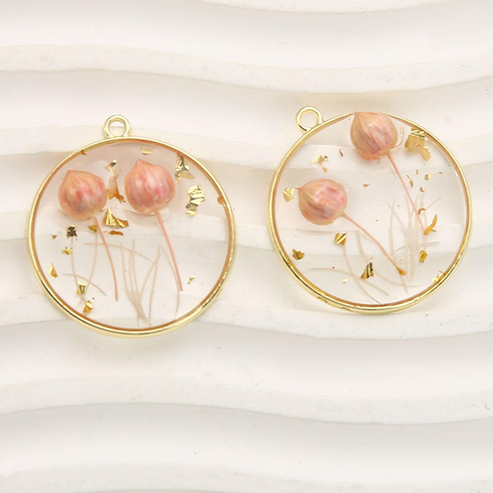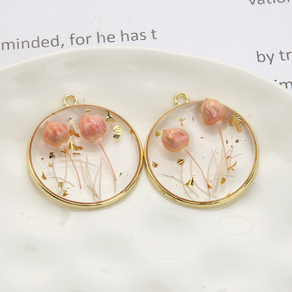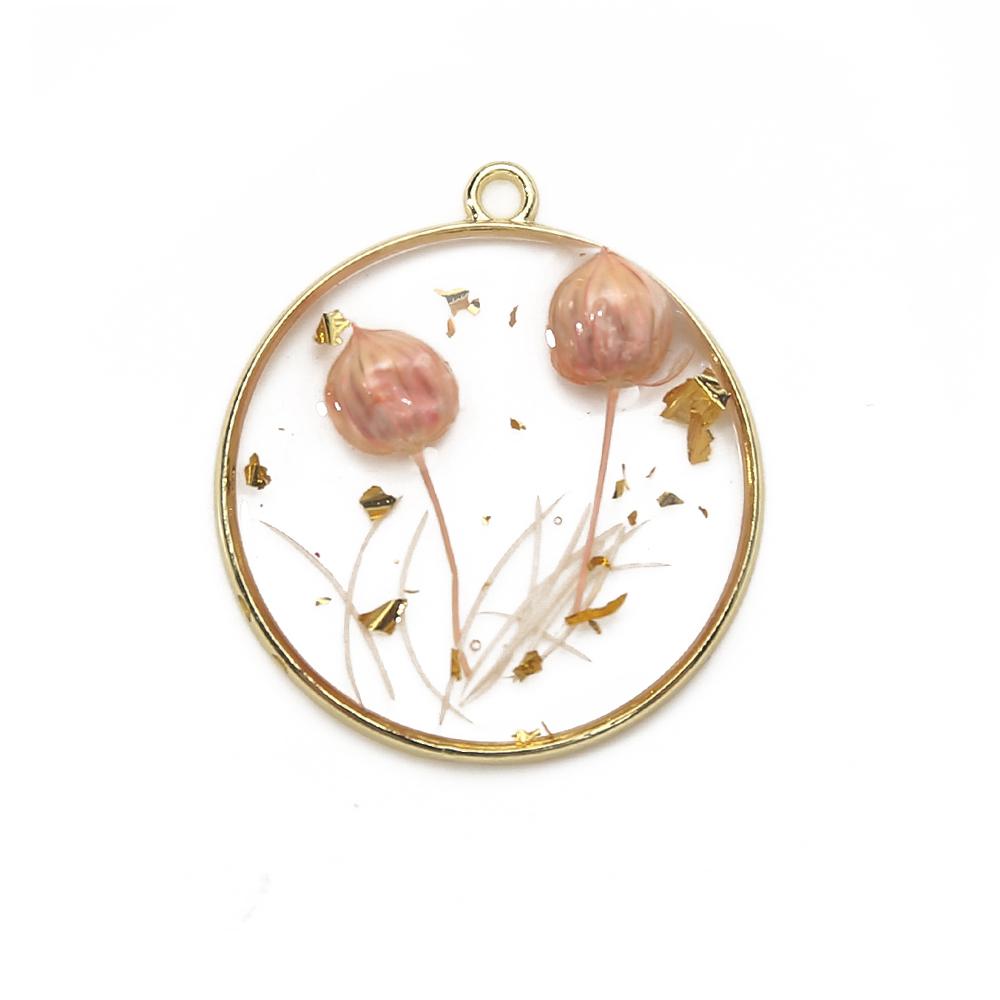 Sárgaréz Függő, -val Szárított virág & Gyanta, galvanizált, DIY & aranyfólia, kevert színek, nikkel, ólom és kadmium mentes, 29.68x6.07x32.83mm, Által értékesített pár