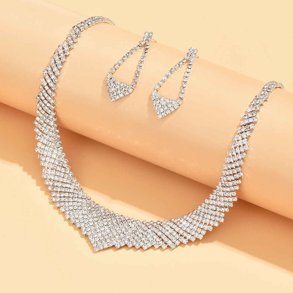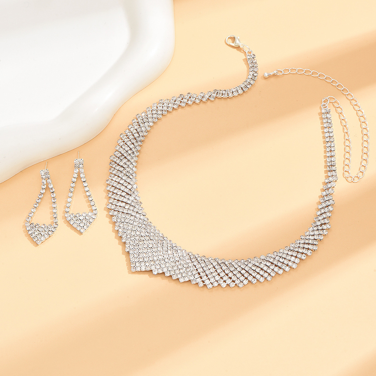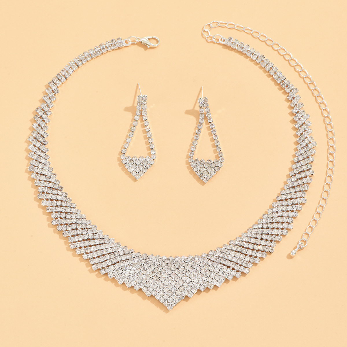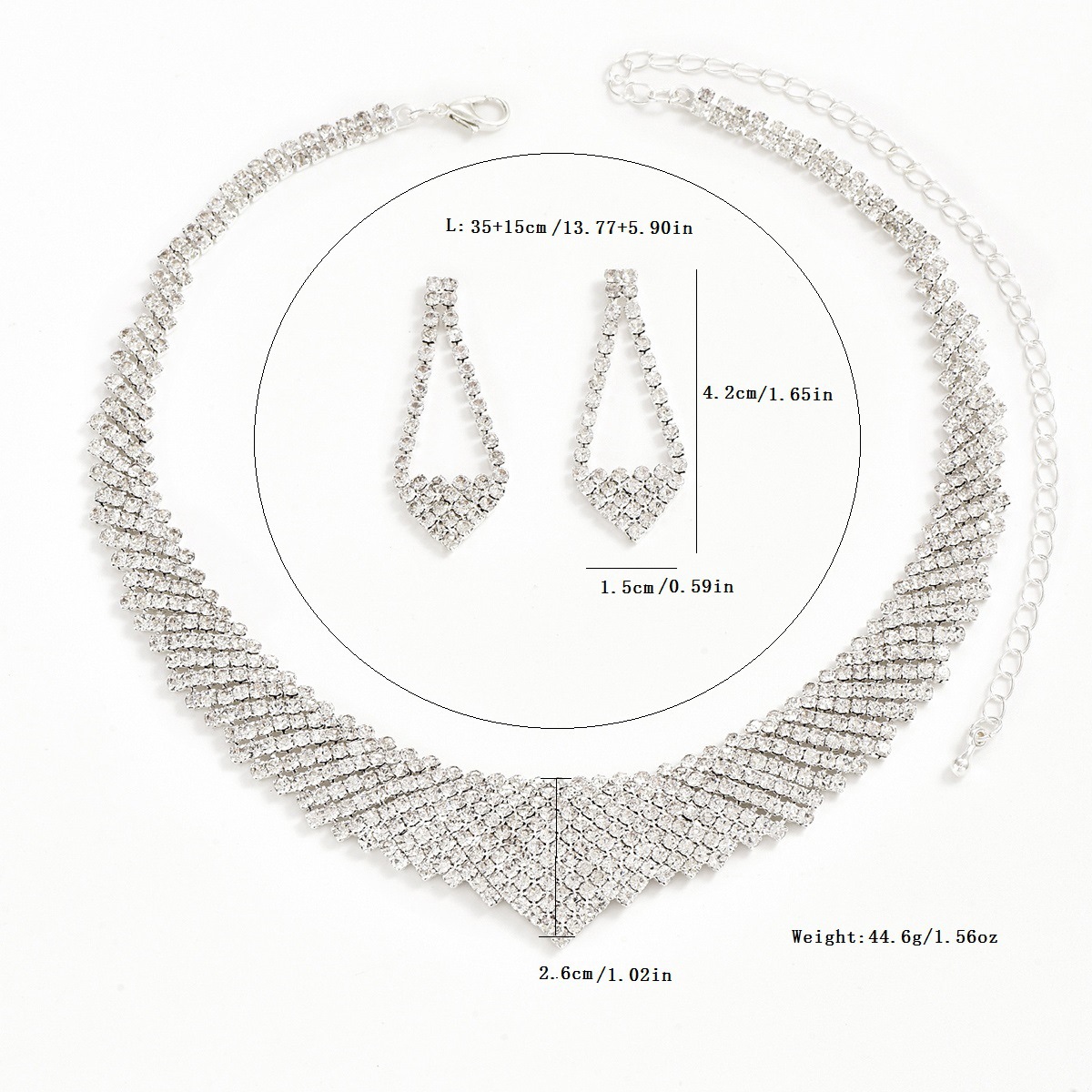 Sárgaréz Jewelry Set, fülbevaló & nyaklánc, ezüst színű bevonattal, 2 darab & a nő & strasszos, Által értékesített Set