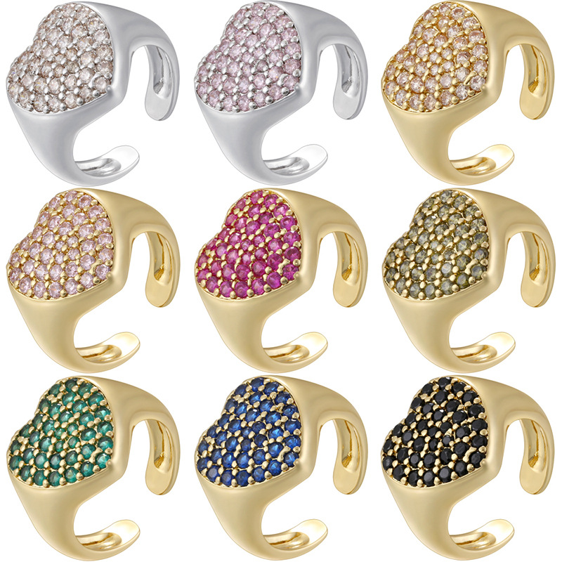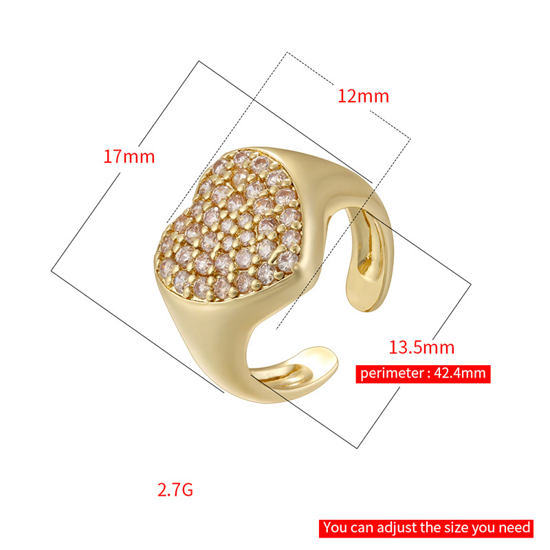 Sárgaréz Mandzsetta Finger Ring, Szív, arany színű aranyozott, a nő & strasszos, több színt a választás, Méret:2.5, Által értékesített PC