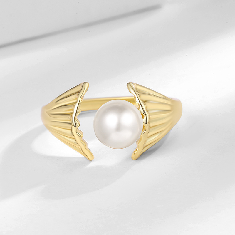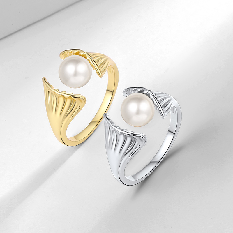 Sárgaréz Mandzsetta Finger Ring, -val Műanyag Pearl, galvanizált, divat ékszerek & a nő, több színt a választás, Által értékesített PC