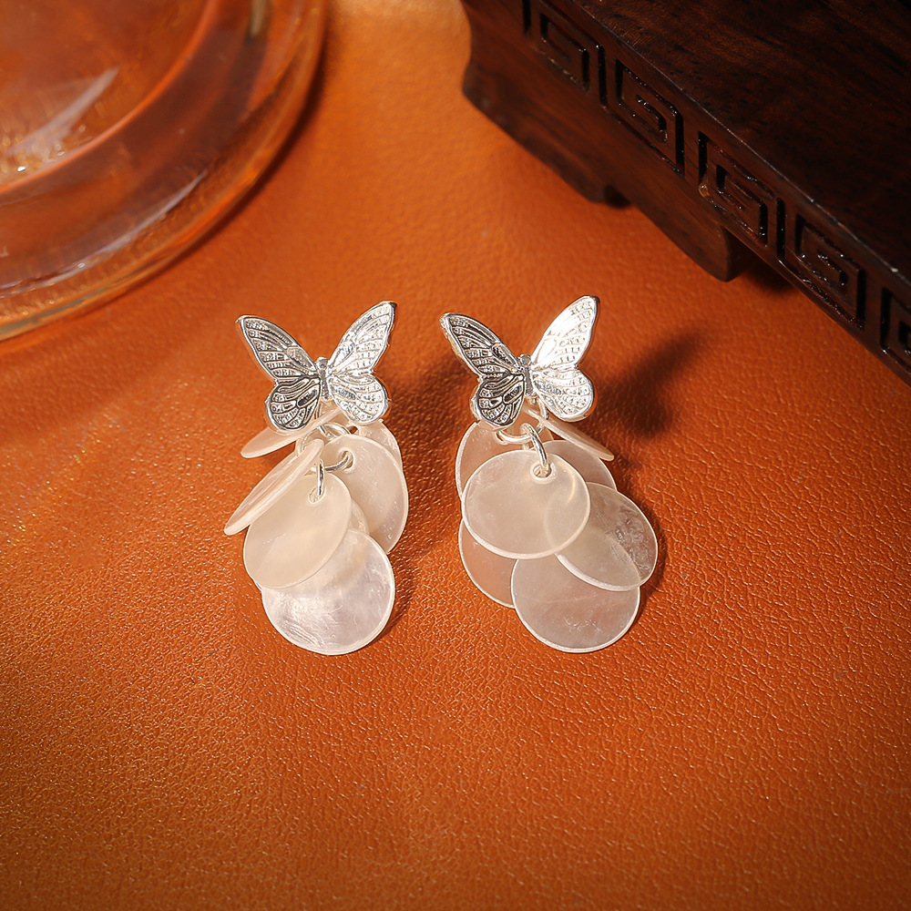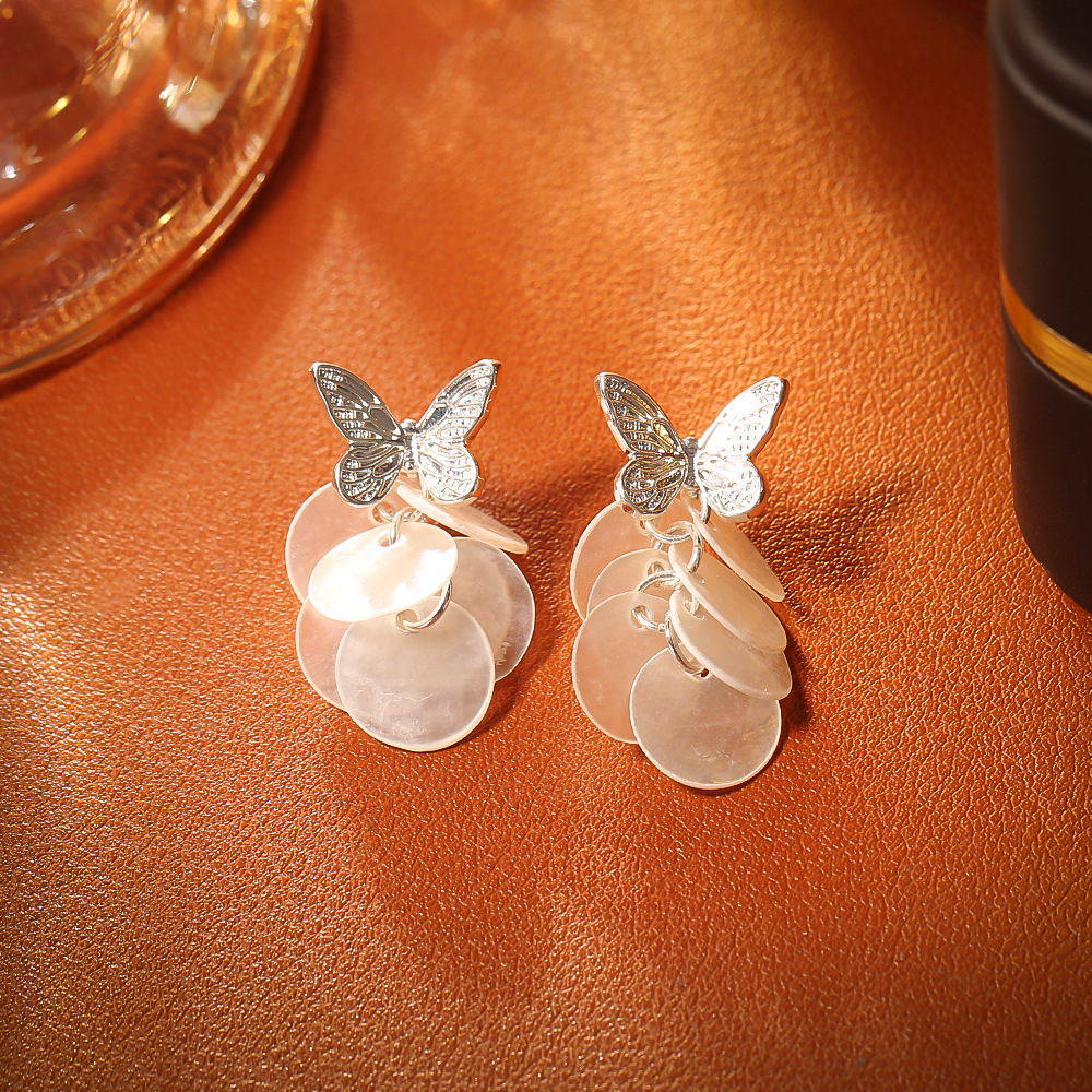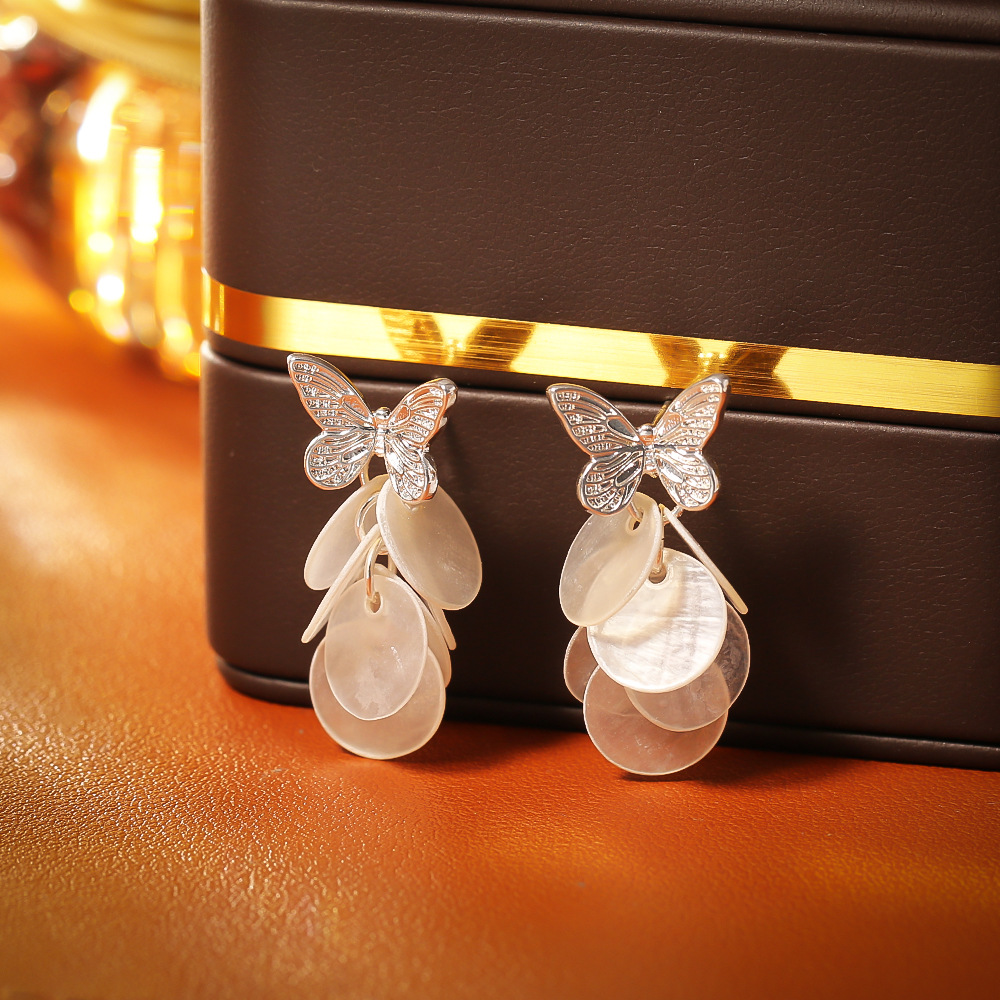 Shell Fülbevaló, Sárgaréz, -val Héj, Pillangó, galvanizált, divat ékszerek & a nő, ezüst, Által értékesített pár